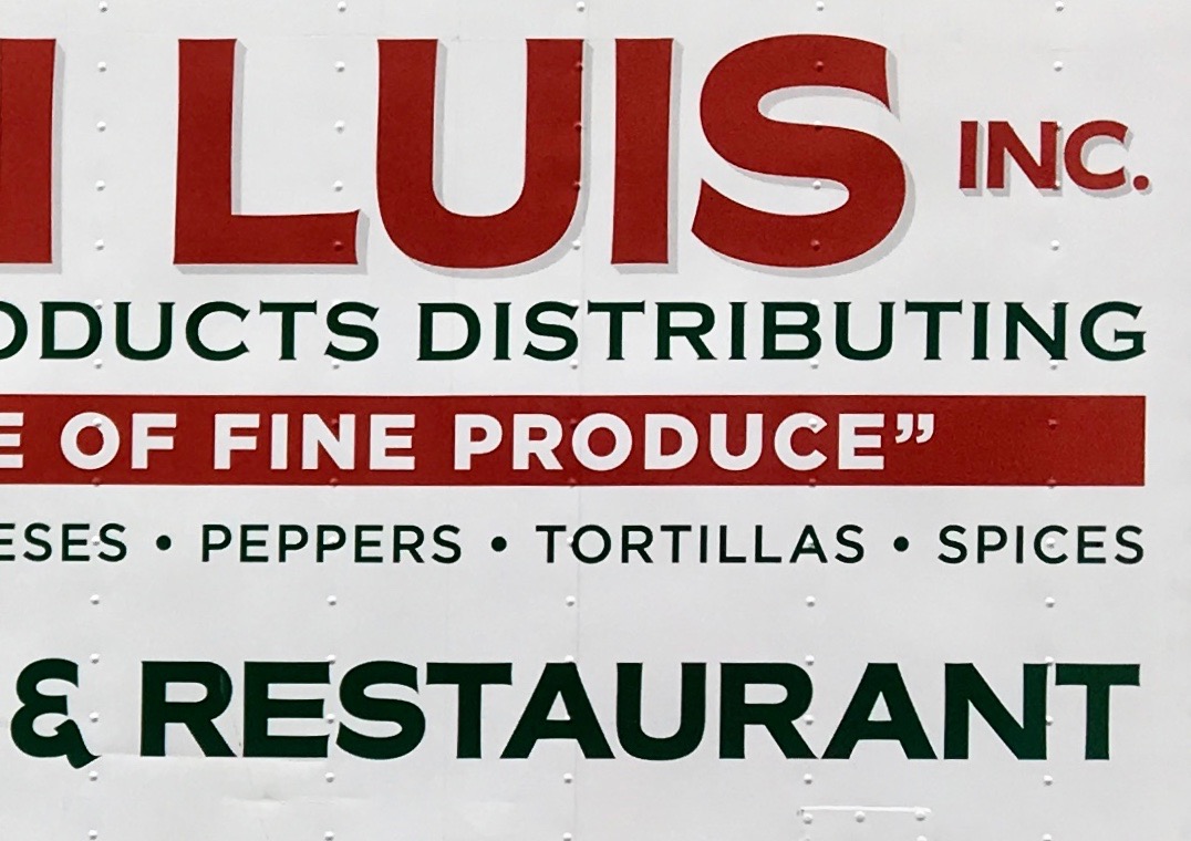 This truck fooled me. At first I assumed it was hand painted — that flick at the end of the ‘S’, the handwriting ampersand, the close shade — but closer inspection revealed Workhorse, a font calculated to mimic a sign painter’s gothic. The shadow on the right side could have been a clue: sign painters usually shade on the lower left.