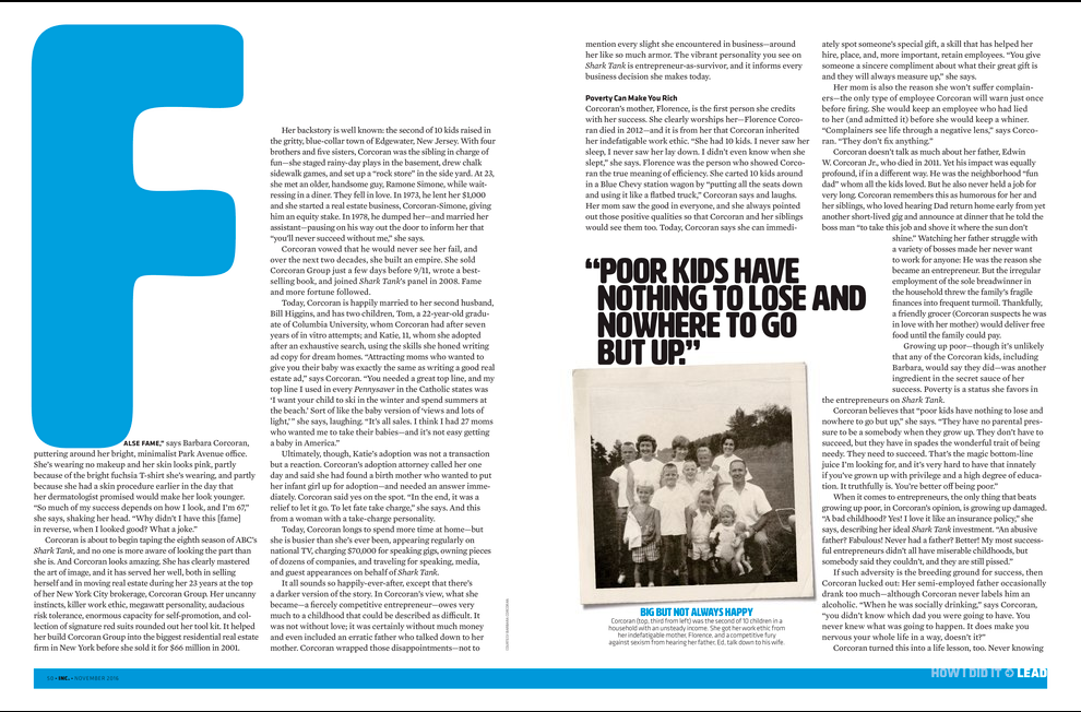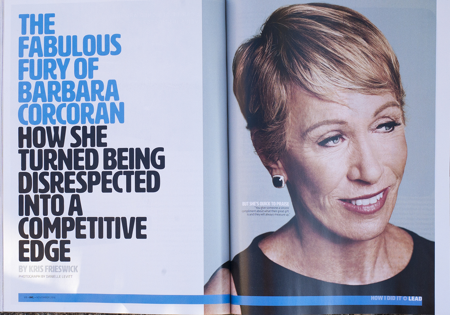 For last year’s November issue, Inc. magazine expanded its standard type palette composed of Mercury and Klavika to additionally introduce HWT Artz. The all-caps display typeface with rounded corners is featured on the cover and in the main story about Barbara Corcoran, but also pops up throughout the magazine where it is used for initials, headlines and pull quotes.