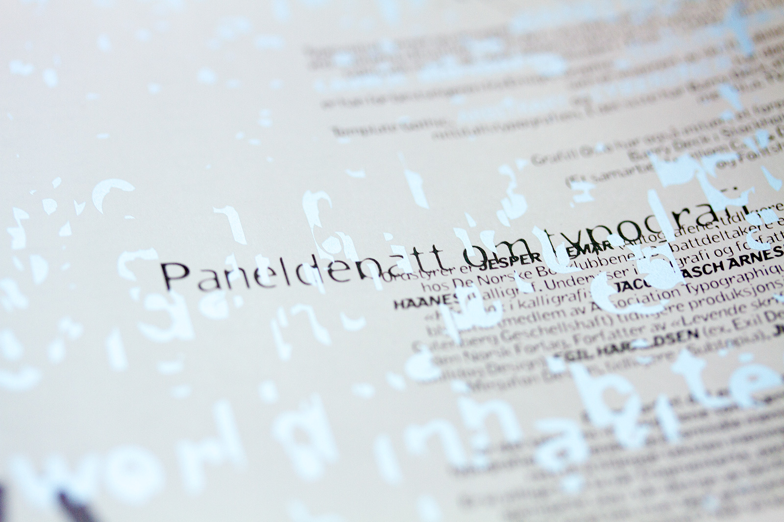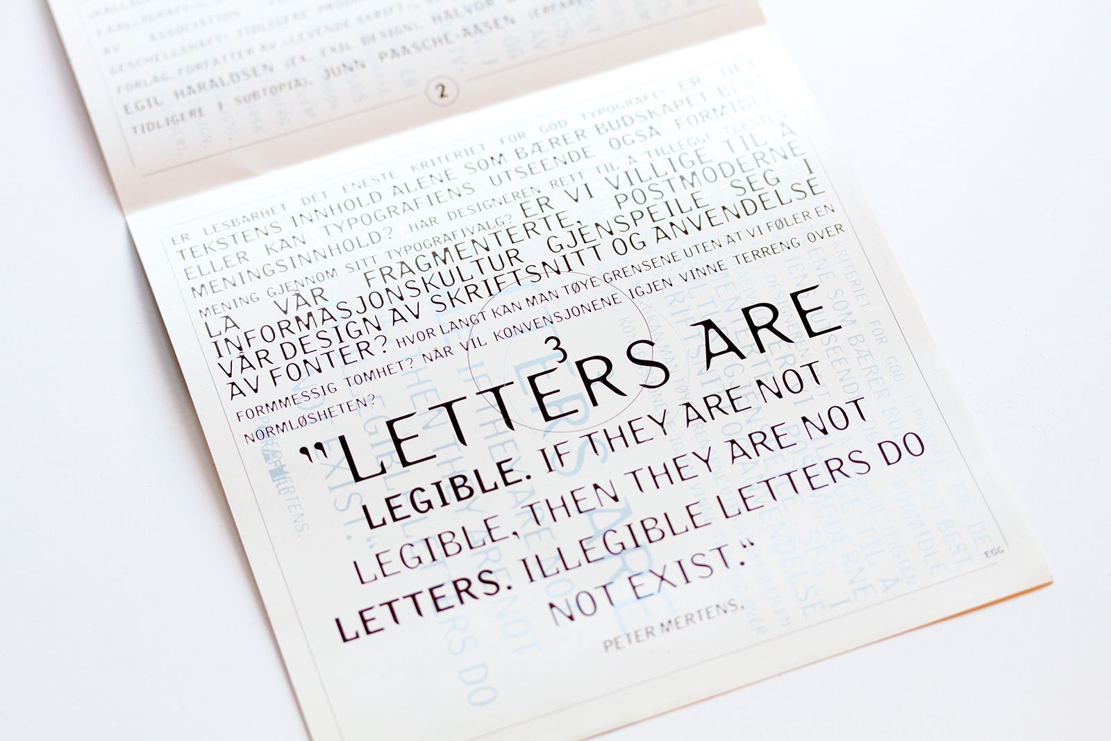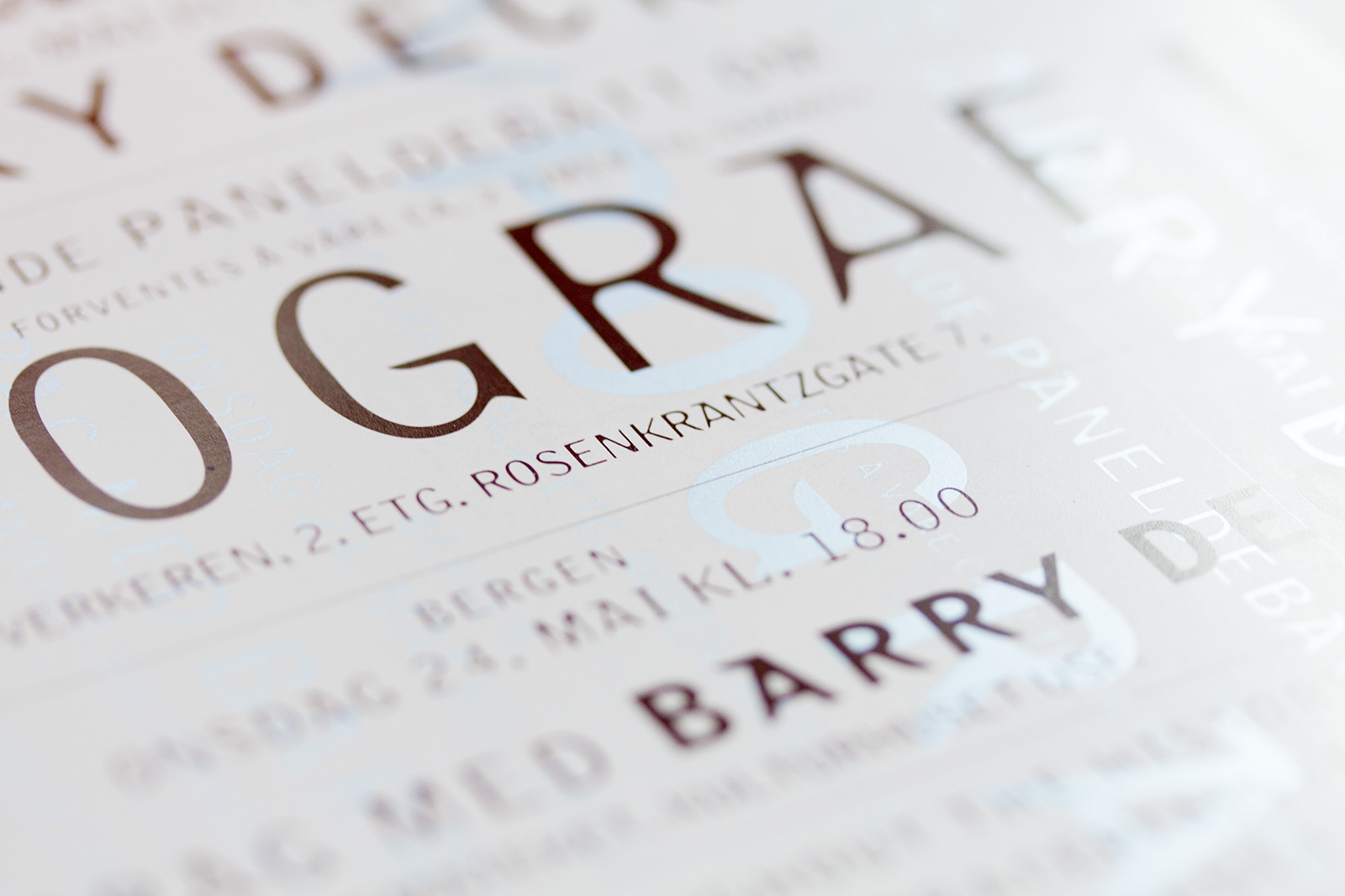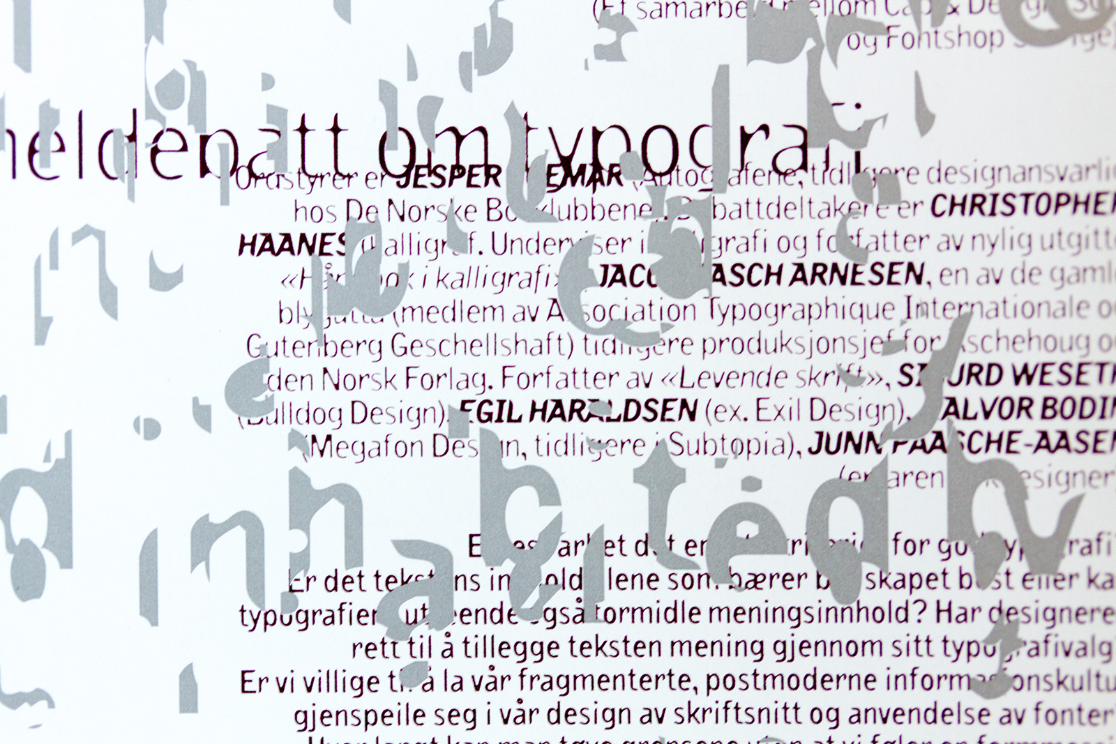 One side designed by Halvor Bodin (Megafon) and other side designed by Christian Leborg (EGG). Both sides have the same information but as an experiment in readability and to pinpoint the theme of the lecture and the following debate we wanted to do two different designs to juxtapose different design languages. In addition it was to meet the critique we got from Grafill-members for the “unreadable” invitations sent out from the Oslo group. Funny enough this invitation got even more negative reactions. I could hardly believe it…