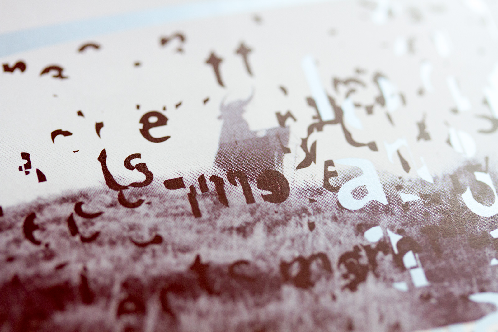 Printed in silver and dark brown/red