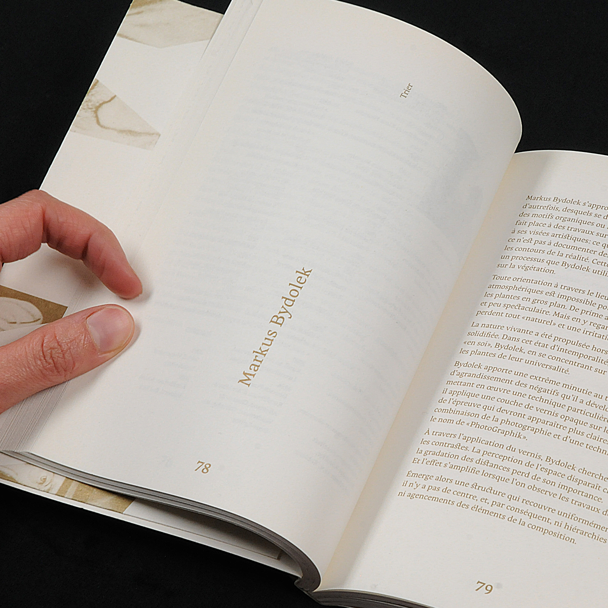 The bilingual publication uses the roman cut for French texts and an almost upright italic cut for the German parts. Another more inclined cut is employed for inline emphasis, among other places. The cover features yet another cursive variety with swash caps. Stockmar was originally conceived with three different italics. The revised version available from 205TF is easier to use and has only one italic.