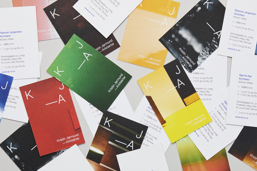Kristin Jarmund Architects is an Oslo-based architectural studio with a design philosophy that is focused on using a simplicity of form and a clarity of purpose to address complex problems, while at the same time allowing for a contextual and human sensitivity. Reduction, as well as the duality inherent to the studio’s work, was the founding principles of their new visual identity, created by Scandinavian studio Snøhetta. This can be seen in the juxtaposition of type and image, and the recurring motif of extracts within both of these.
