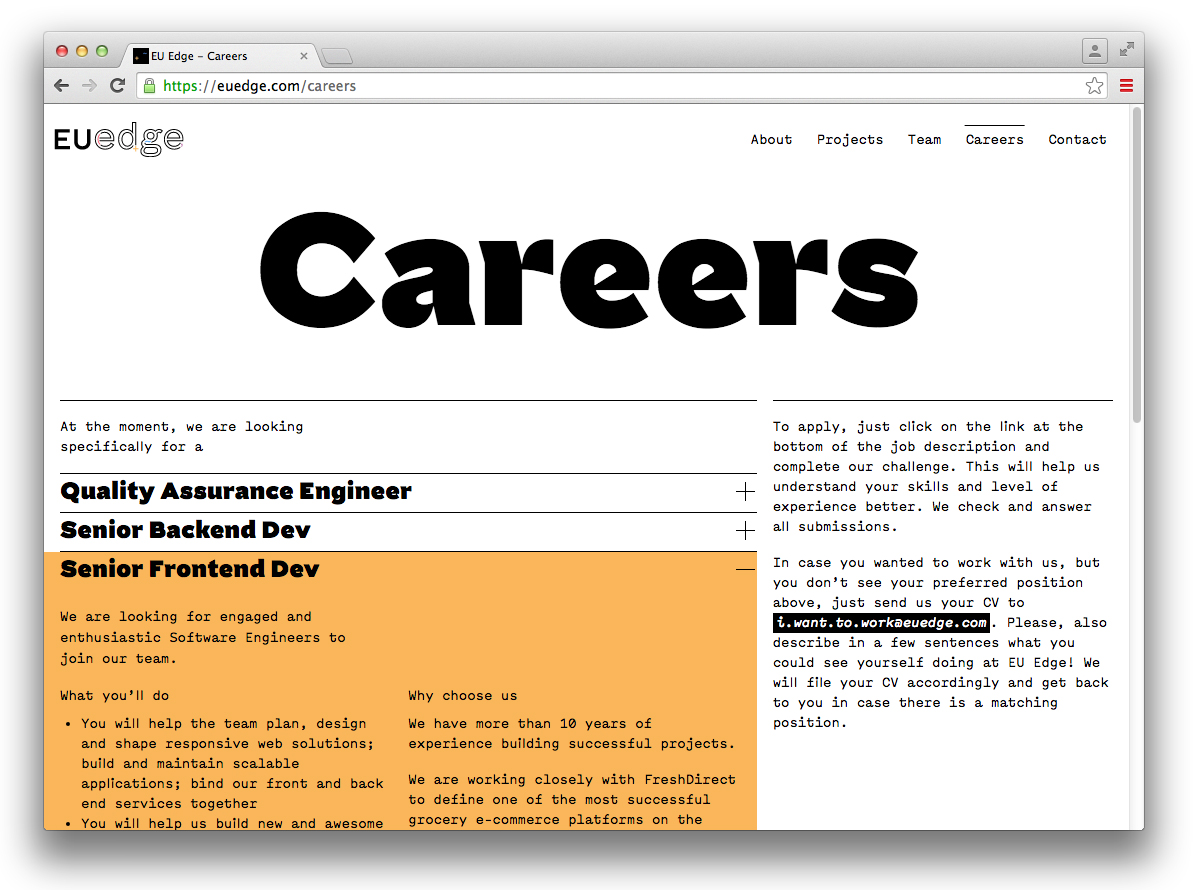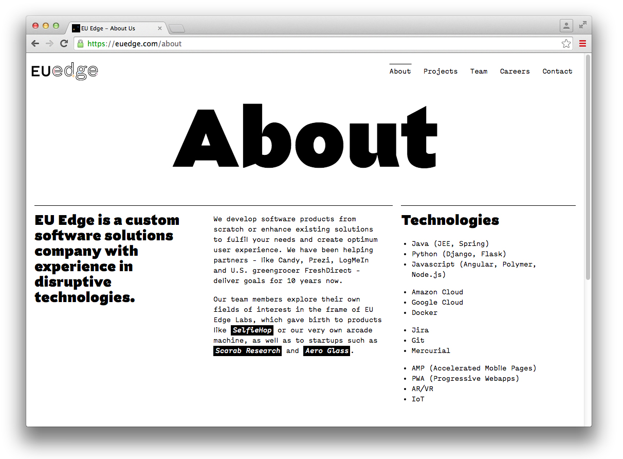Budapest-based agency Submachine make good use of Capo’s Black weight as headline type for software developers EU Edge. Capo is supported by monospaced Menœ Grotesque for text, with cartoon-style illustrations supplying colour.