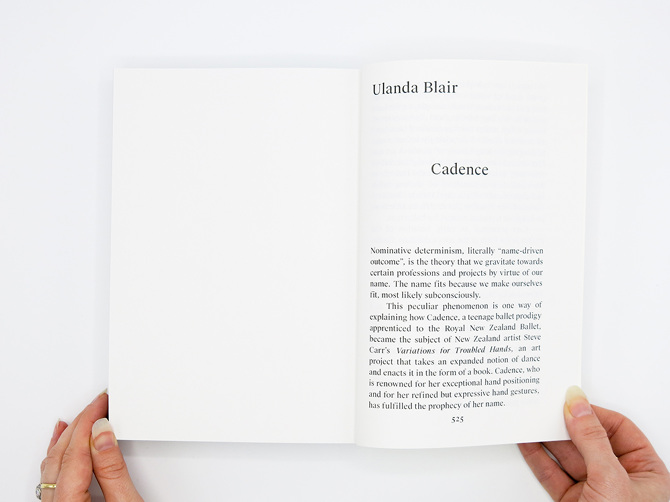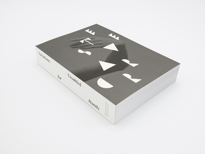 Variations for Troubled Hands leverages the long history of hands in art and film. From the fetishistic symbolism of surrealists Man Ray, Salvador Dalí and Luis Buñuel, to the nonchalant minimalism of choreographer and experimental filmmaker Yvonne Rainer… At once an interactive object and a performance space, [the book] manifests the dynamics of movement, and invites us to dance with it.