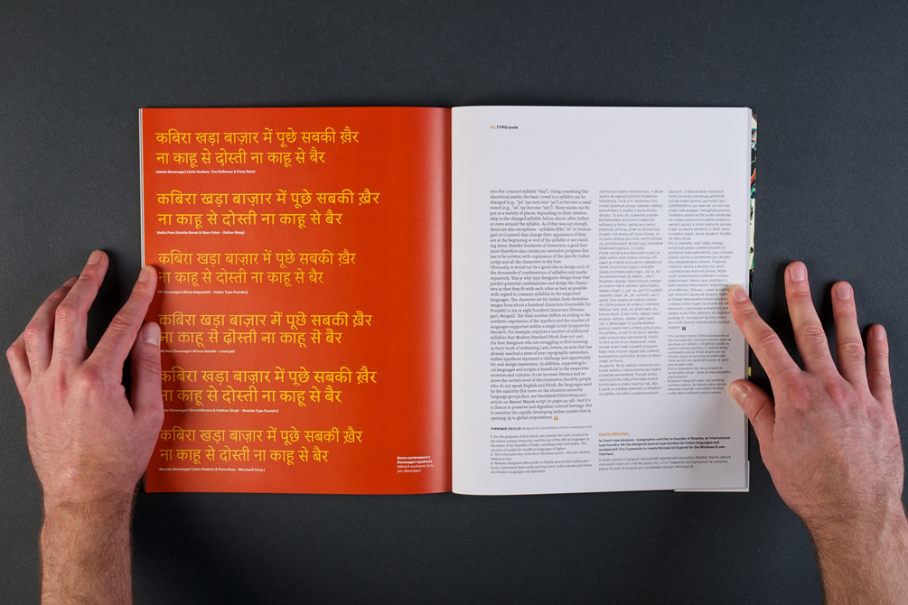 This issue of the typographic magazine Typo attempts to present a broader perspective of typography and lettering arts in India, its history as well as some recent design projects. The magazine presents articles and essays from renowned designers, a widely published scholar and historian, and many other type designers both from India and abroad. Skolar is used for several articles, in addition to one by its designer David Březina.