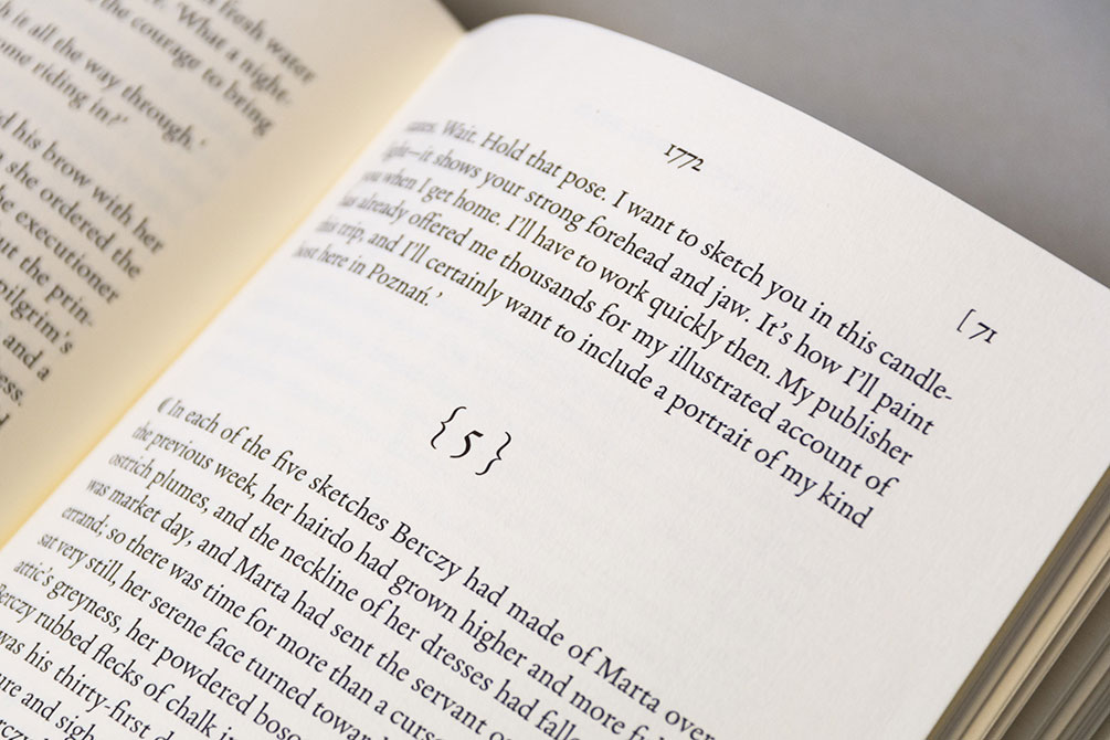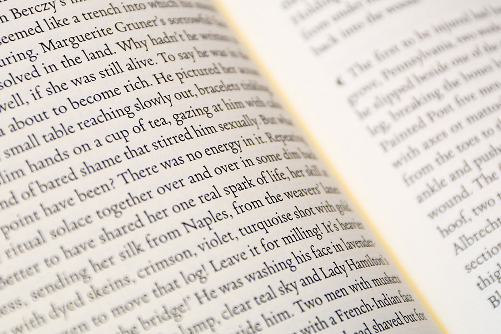 Andrew Steeves relied on Neacademia for the heavy-lifting in John Steffler’s 333-page strong novel German Mills, the story of an 18th-century fortune-seeker, who’s leaving behind his German home to embark on a journey into the American wilderness. The typeface is used for the jacket and throughout the book, where the skilfully placed typography is accented with woodcut illustrations by Jack McMaster. The composition of the cover is based on a woodcut title page from a 1788 German-language almanac printed in Halifax, with title and author in Lucida Blackletter.