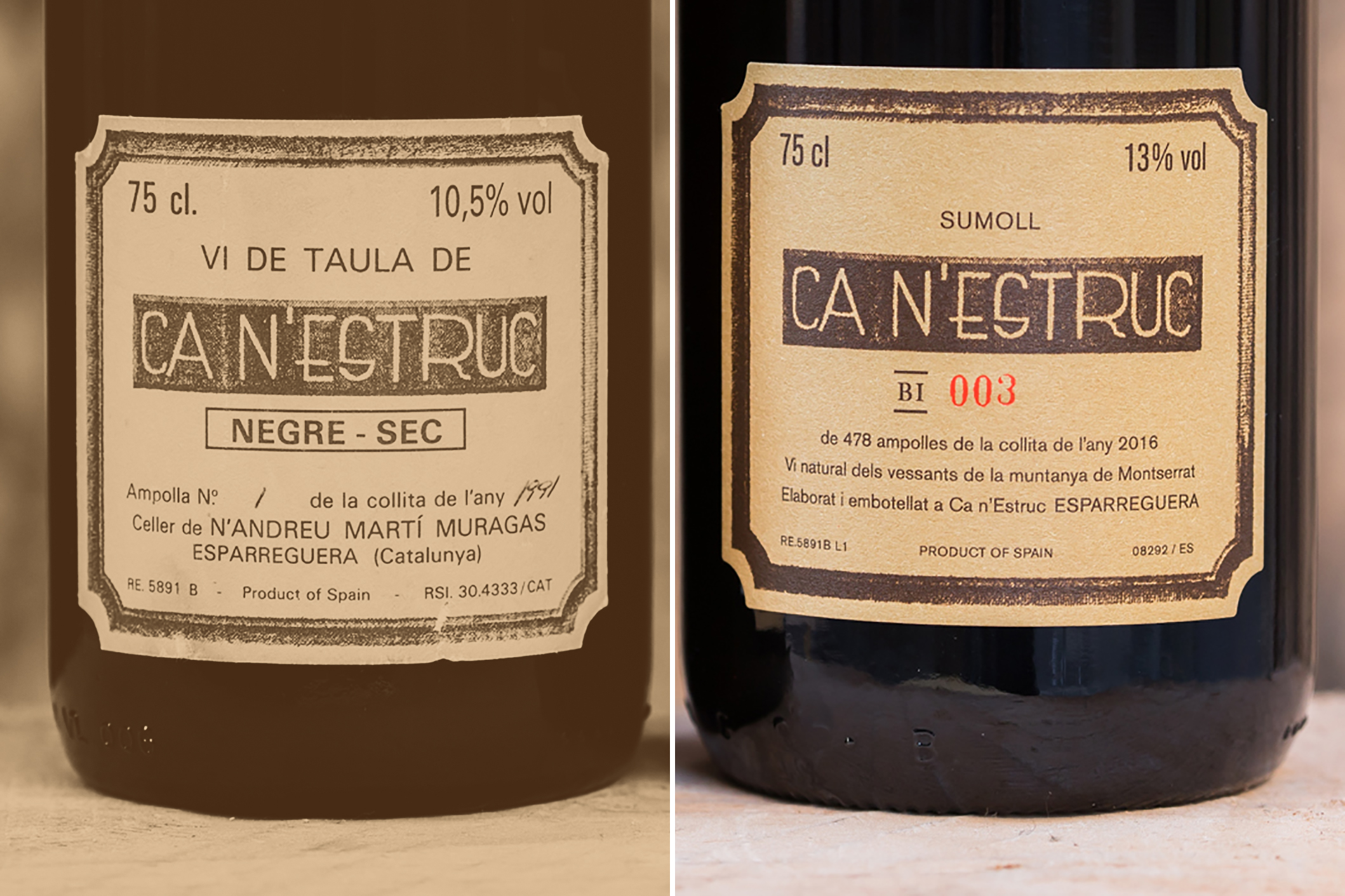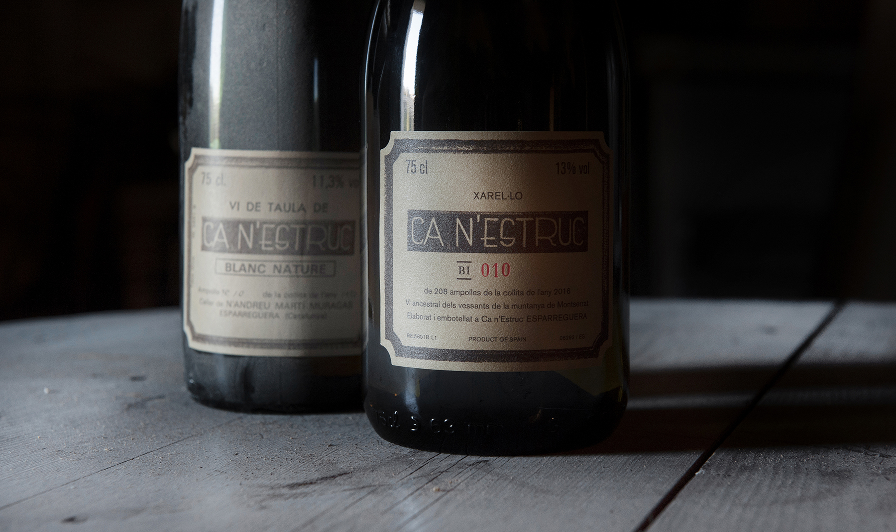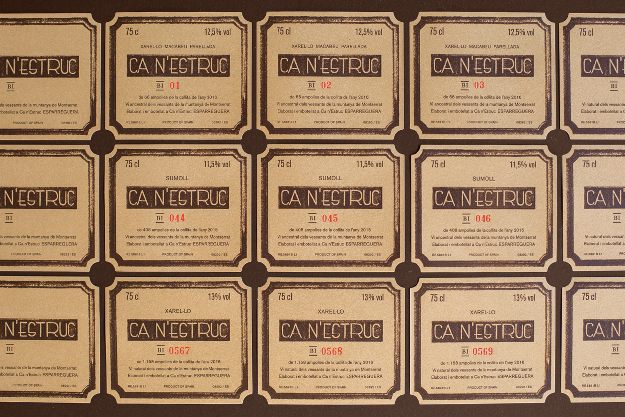 BI was born in a corner of the Ca n’Estruc winery. Born from nostalgia for times past; from working with your hands; from listening with your heart and accompanying the vines along their natural path. The original design of the winery’s first label has been recovered and adapted to the new requirements. A wide variety of limited edition wines, specially selected from specific vats, amphora, vintages or vineyards — from 66 bottles —, with the labels numbered using a traditional mechanical system. Design without designing. No masks and no artifices.