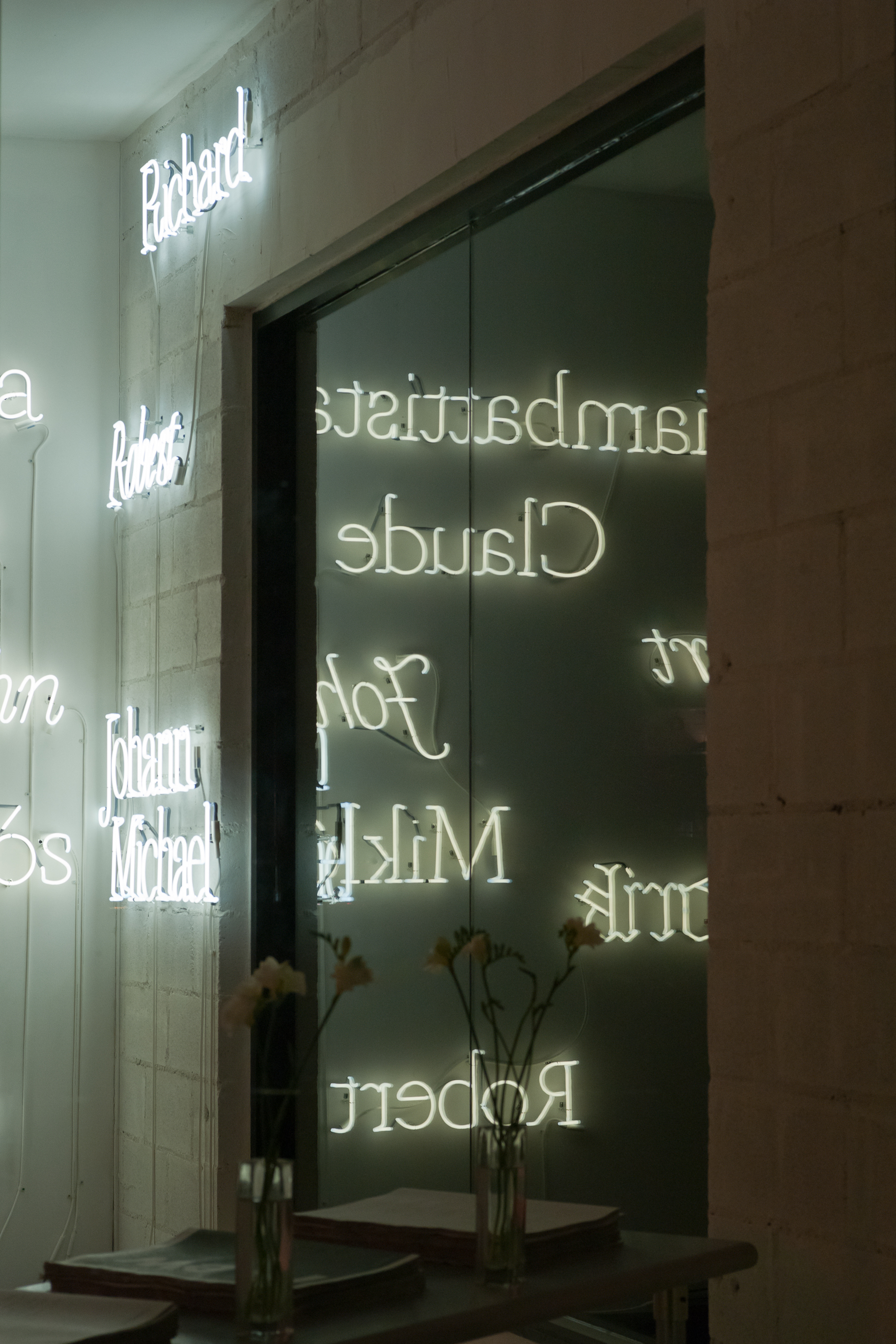 Thieves Like Us neon Contributed by Caren Litherland on Jul 24th, 2012. Artwork published in 2011. Source: www.flickr.com Photo: Caren Litherland. Photo by Caren Litherland. License: All Rights Reserved. Commercial Type’s Marian began “as a rendering of the copperplate form in Illustrator, almost like a piece of neon script from Sweden.”* Shown here translated to neon by artist and designer Dino Sanchez at the pop-up exhibit on Kenmare Street in New York. * from the exhibition catalogue License: All Rights Reserved. Typefaces More about MarianGet MarianMore about Marian BlackGet Marian Black Formats Art/Illustration (501) Exhibition/Installation (1180) Topics Graphic Design (3005) Art (4672) Designers/Agencies Dino Sanchez Tagged withneon (155)lettering (683)type specimens (174)art exhibitions (860) Artwork location United States (9905) New York City (2909) In Setsbb (Leonardo de la Fuente) (1331) 1 Comment on “Thieves Like Us neon” Florian Hardwig says: Mar 16th, 2014 2:42 pm Read Caren’s review of Marian for Typographica’s Favorite Typefaces of 2012. Post a comment Name Email – will not be published Website Your response Submit Comment More Marian in use Avelyn & Maggs wedding invitation2015The Counter PressContributed by Stephen Coles Staff Pick The Inspired Home: Nests of Creatives2014Jeanette AbbinkEmily CM AndersonContributed by Florian Hardwig Staff Pick Dernière danse2016Clément Le Tulle-NeyretContributed by Clément Le Tulle-Neyret Staff Pick Sponsor More in Graphic Design ALUO Uho2024Žiga AnderličContributed by Alja Herlah Souvenirs of Places Never Visited: The Moon2016Frau im MondLisa H. MouraContributed by Frau im Mond 250th anniversary of the Portuguese National Press book series (Pato Lógico)c. 2020Pato LógicoINCMContributed by R-Typography Staff Pick Grain2013GrainContributed by Stephen Coles Staff Pick More in Art/Illustration Pearl Jam at Hyde Park concert poster2022Pedro CorreaContributed by Erica Jung Staff Pick Drink Michigan Apples2014Kyle FletcherContributed by Stephen Coles Staff Pick TfL safety campaign2023Ali AugurAndrew HudsonVCCPContributed by Ali Augur Staff Pick Password Marco Polo interactive poem2012Dirk VisContributed by Florian Hardwig Staff Pick More Fonts In Use Salima magazine, Issue 01, “Emergence”2021Mj BalvaneraContributed by TYPE01 Staff Pick BayWa logo (1972–)1972Otl AicherContributed by Florian Hardwig Staff Pick “77%” poster campaign by the Pro-Choice Public Education Project1998Abi Aron SpencerAaron EisemanDeVito/VerdiContributed by Florian Hardwig Staff Pick Le Monde en Sphères2018MichelinesContributed by R-Typography Staff Pick