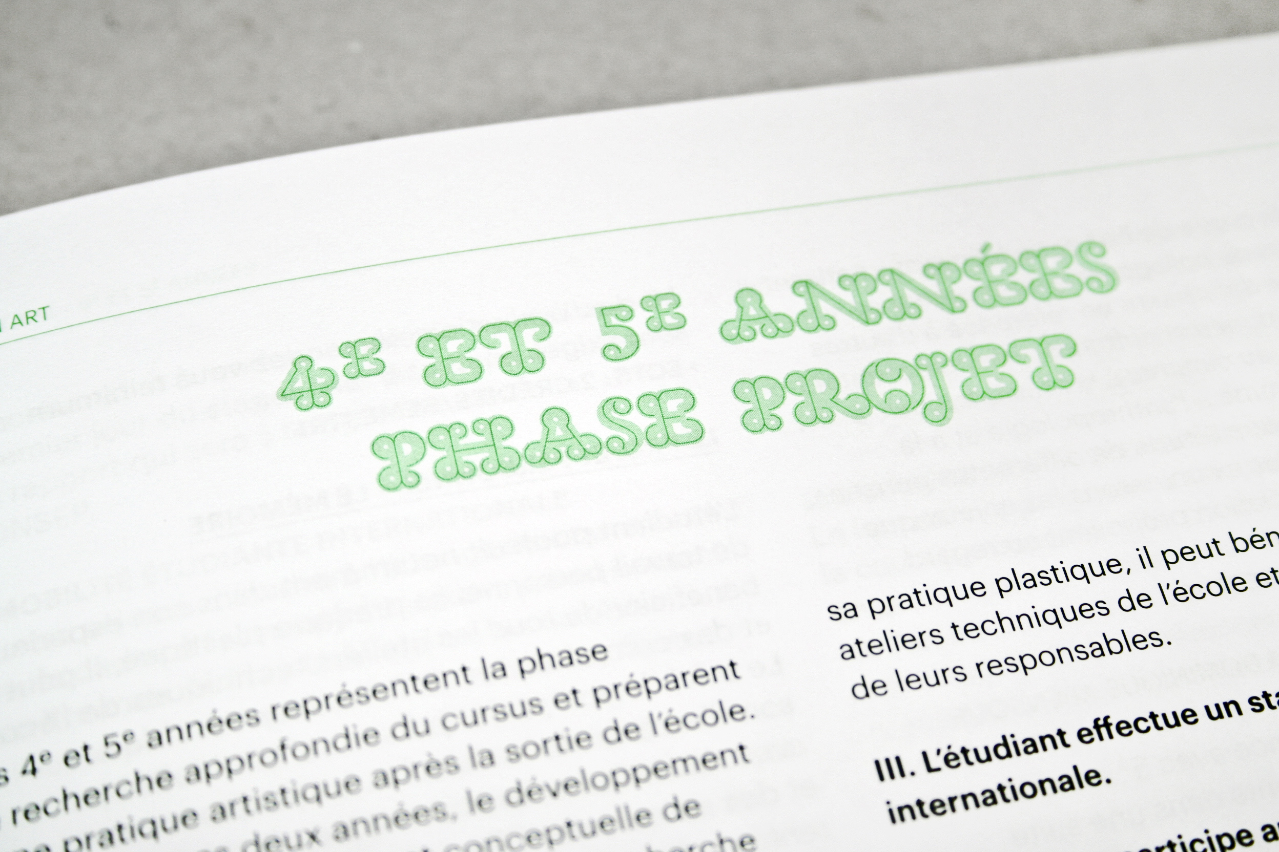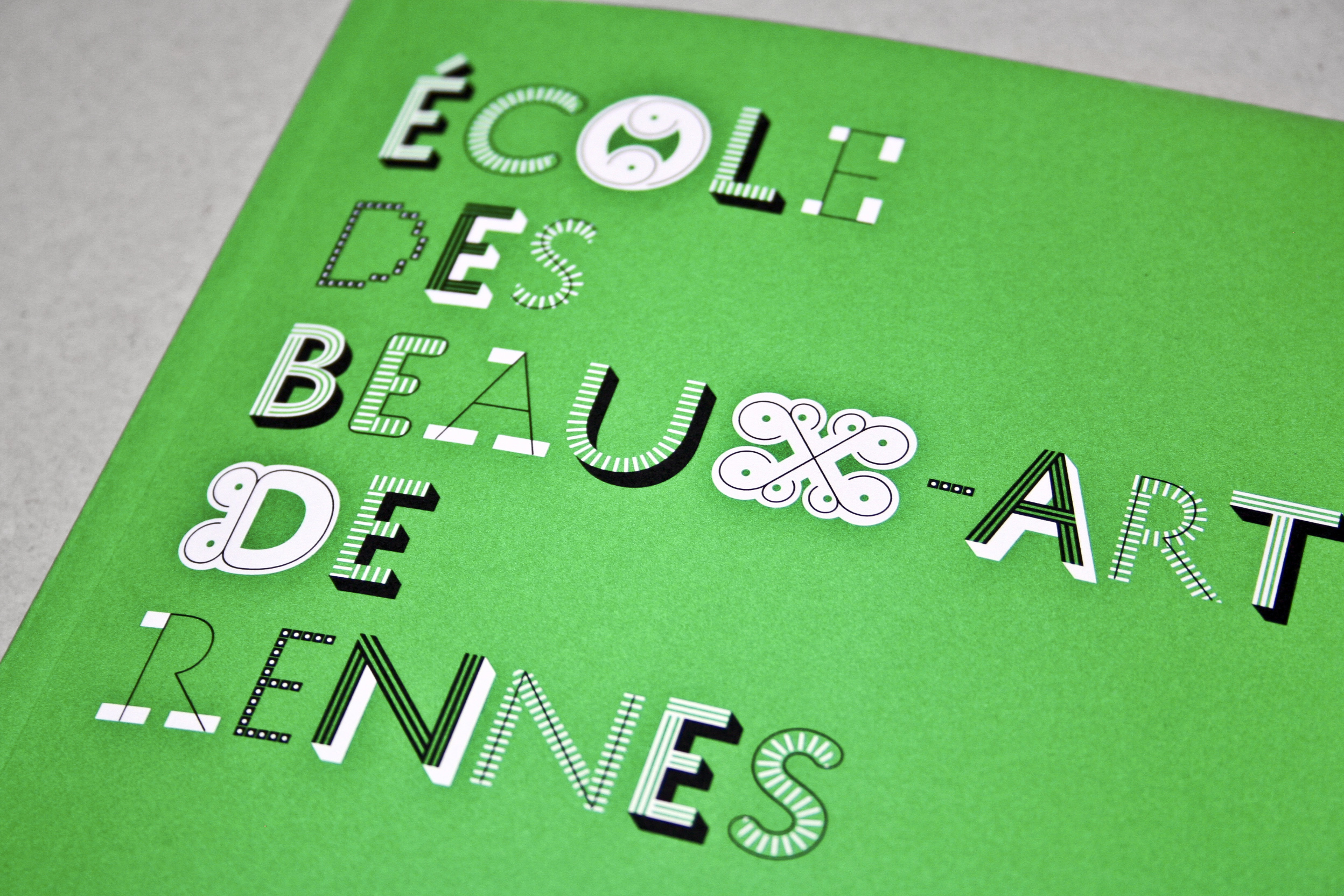 Rennes School of Art catalogue Contributed by Typotheque on Jul 24th, 2012. Artwork published in 2011. License: All Rights Reserved. Annual booklet for the Rennes School of Art. Each section title is composed in two weights of the History font in order to give an identity to each parts of the booklet. Each of the letters on the cover regroups the two weights used in each titles. Caroline Fabès. License: All Rights Reserved. Caroline Fabès. License: All Rights Reserved. Typefaces More about HistoryGet History Formats Books (6544) Magazines/Periodicals (1837) Topics Education/Academia (2186) Art (4703) Designers/Agencies Caroline Fabès Tagged withart schools (187)catalogs (176)green (778)French (language) (2549)chromatic (768)layers (103)EESAB (5) Artwork location France (2851) Rennes (20) In SetsBooks (personne1) (6)cool (Karo Konieczna) (871)The Endangered Unrulies (Justyna Stawida) (6) 1 Comment on “Rennes School of Art catalogue” Robert Pariseau says: Dec 1st, 2022 3:12 pm So many damn typefaces, even used by the same letter… Post a comment Name Email – will not be published Website Your response Submit Comment More History in use Confluential 3.0: Prêt-À-Porter2018Fictionist StudioJoanne ChewContributed by Matthijs Sluiter Medium collection coversc. 2019Renald LouissaintContributed by Florian Hardwig Staff Pick Good Idea Slovakia2016Creative DepartmentContributed by Typotheque Staff Pick Sponsor More in Education/Academia Fault Lines: KABK research forum2022Lennarts & De BruijnContributed by Teguh Arief Bildermaus and Leselöwen books by Loewe Verlag2022Loewe VerlagContributed by Anja Meiners LEGO Education logoc. 2017Contributed by Marat Koshoev Brutalizm by Achille Mbembe2024Przemek DębowskiKarakterContributed by Anna Kovalenko (Kyiv Type Foundry) More in Books Une Journée à Lausanne2021Studio Frédéric HeldContributed by Frédéric Held Merveilles! ceramic exhibition at Sèvres, Manufacture et musée nationaux2024Studio MattersContributed by WrittenShape Type Foundry 100 Buildings. Moscow Architecture of The Soviet Period2016Anastasiia NabokinaContributed by Vyacheslav Kirilenko Il deserto dei Tartari 2020Veronica PaoliMichele BiondiRachele BozzatoContributed by Veronica Paoli More Fonts In Use The Voidz at Market Hotel poster2019Aaron Lowell DentonContributed by Bryson Stohr Staff Pick Ernest Hemingway book covers1971Werner RebhuhnContributed by Nick Sherman Staff Pick The Shape of Water unofficial posters2017Tony StellaMidnight MarauderContributed by Quentin Schmerber Staff Pick Nintendo Entertainment System consoles and components1985NintendoContributed by Stephen Coles Staff Pick