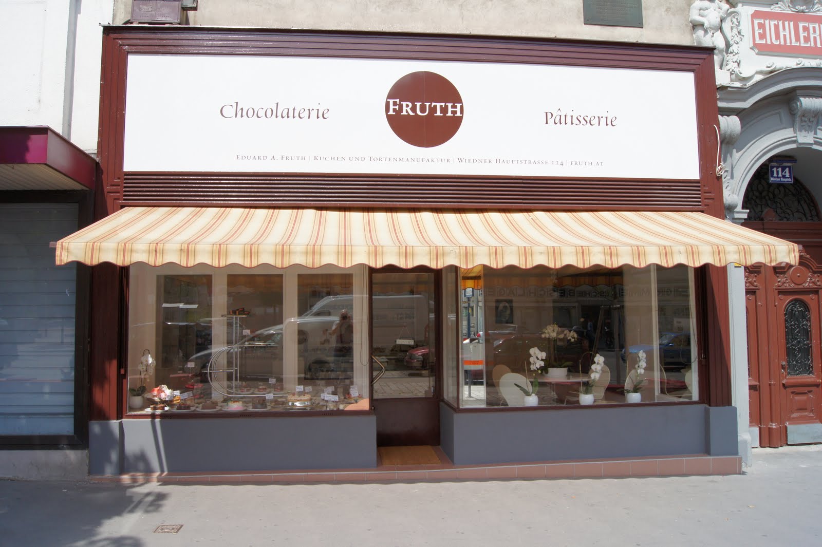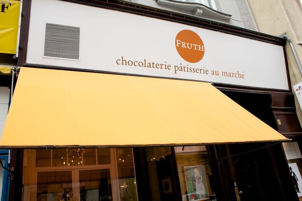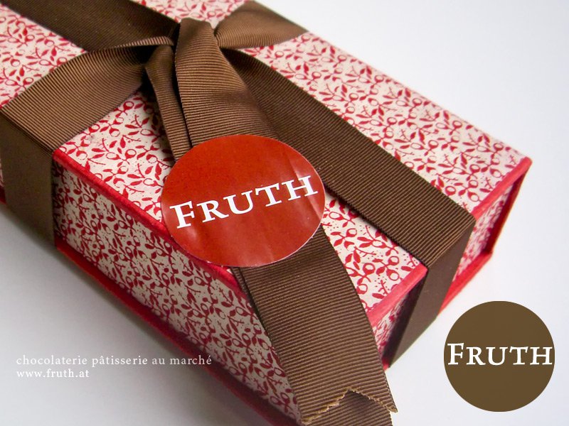 Fruth is a “chocolaterie pâtisserie au marché" in Vienna, established in 1996 by Eduard A. Fruth, and well-known for handmade high-quality chocolate and confectionery. At least since 2002, Fruth uses Rialto for the typographic identity. The typeface by Giovanni de Faccio and Lui Karner appears in the logo (in small caps, reversed in a circle) and also serves for other aspects of the brand, e.g. for packaging and on the signs of both stores.