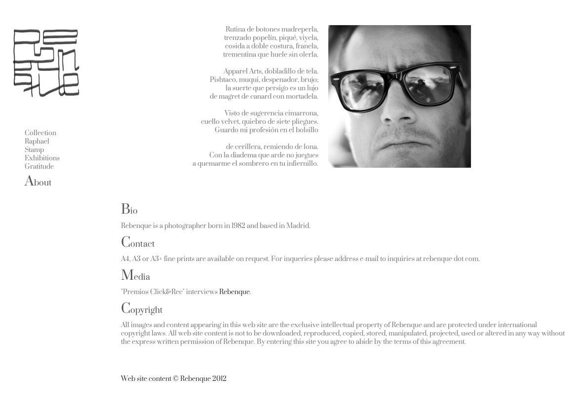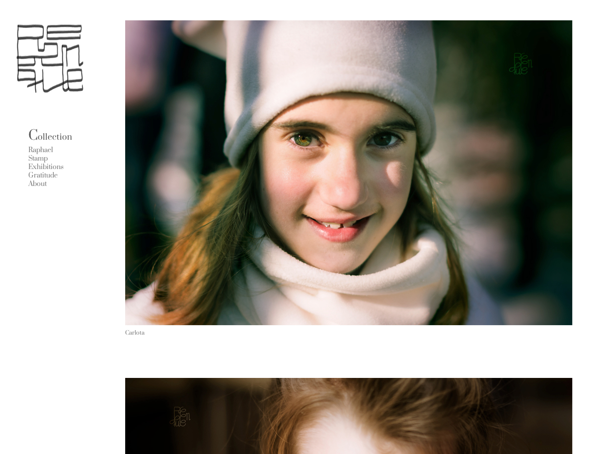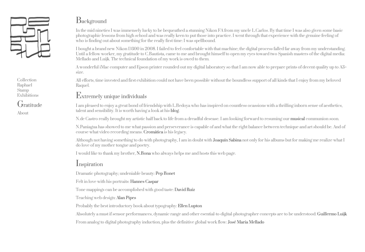 It does only use Prata typeface on three greys. When I designed it I was after a clean and simple interface letting photographs and sketches speak themselves.