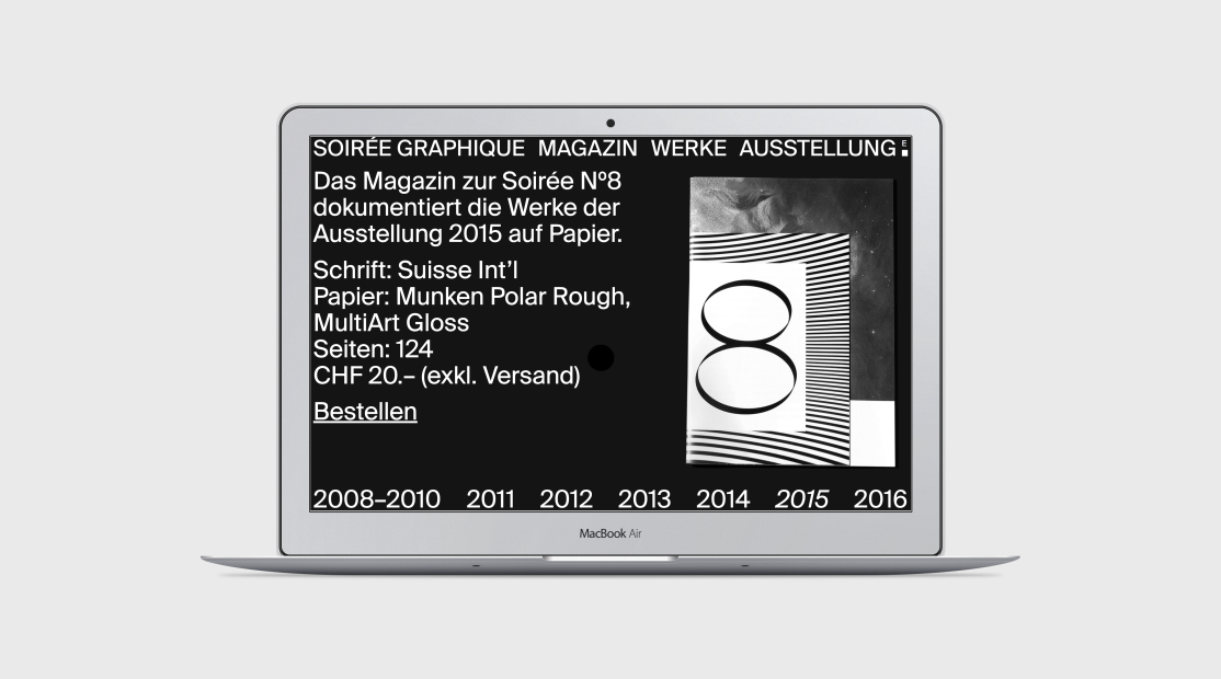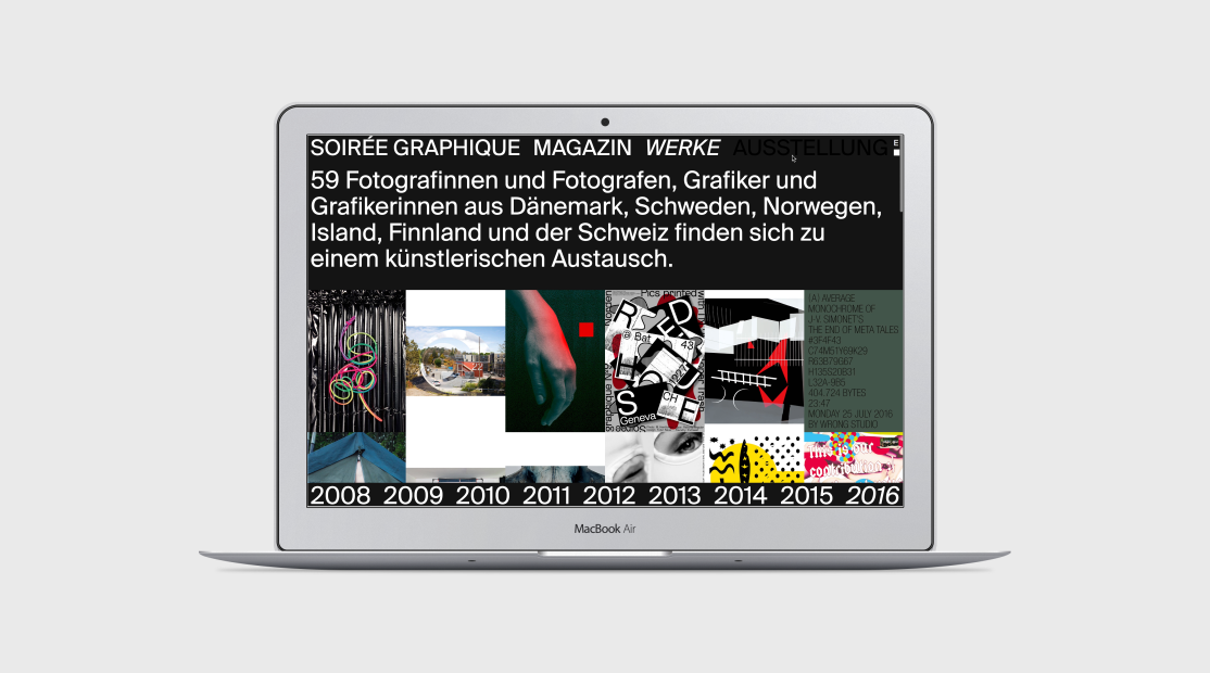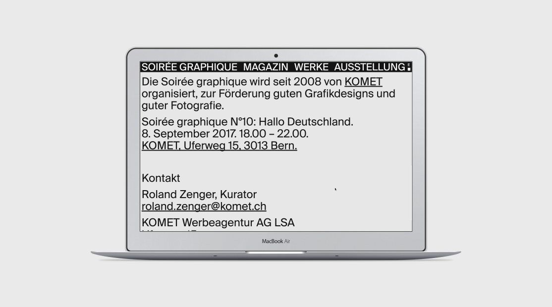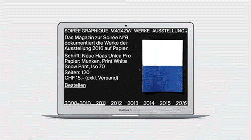 Soirée graphique website Contributed by Swiss Typefaces on Sep 21st, 2017. Artwork published in circa 2017. License: All Rights Reserved. The Soirée Graphique website shows the Suisse Int’l Regular webfont in use. Suisse Int’l is part of the Suisse collection, available from Swiss Typefaces. License: All Rights Reserved. License: All Rights Reserved. License: All Rights Reserved. License: All Rights Reserved. License: All Rights Reserved. License: All Rights Reserved. Typefaces More about Suisse Int’lGet Suisse Int’l Formats Web (5517) Topics Graphic Design (2958) Designers/Agencies KOMET (3) Tagged withSoirée Graphique (5)websites (3471)one typeface (1741)reversed type (3299)German (language) (2447) Artwork location Switzerland (1099) Bern (70) In Setscool (Karo Konieczna) (871)bb (Leonardo de la Fuente) (1305) Post a comment Name Email – will not be published Website Your response Submit Comment More Suisse Int’l in use I Giganti Verdi di Fusignano2024Cobra StudioContributed by Cobra Studio 2021 Weekly Index calendar2020Filippos FragkogiannisGeorgia HarizaniContributed by Filippos Fragkogiannis Explore 314c. 2022Stanislas WiartNora ValentiniGregory PageContributed by stanislas wiart Sponsor More in Graphic Design Nombril magazine, issue 12023Studio VacarmeContributed by Giulia Boggio “The Birth of the Alphabet” poster2008Alex HuinchulefContributed by Laura Serra History of the Linotype Company2014Marnie SoomContributed by Stephen Coles Reflection on Practice2019Maddy AngstreichContributed by Maddy Angstreich More in Web How Bad Is Your Spotify? website2020Mike LacherMatt DanielsContributed by Jack Grimes 7th graphics2017Gazmend ZeneliContributed by Gazmend Zeneli Travel Nevada website2013Y&RIcelabsContributed by Webtype Sebastian Q2012Contributed by Indra Kupferschmid Staff Pick More Fonts In Use Para-Transit: Neglected Options for Urban Mobility1974unknownContributed by Rachel Cole Staff Pick Théâtre de Quat’Sous 2018/192018Le SéismeContributed by Letters from Sweden Staff Pick Magic as Medium by Shawn DeSouza-Coelho2022Callin MackintoshContributed by SM Foundry Staff Pick Edwin Starr – “Twenty-Five Miles” / “Love is My Destination” German single cover1969unknownContributed by Garrison Martin Staff Pick