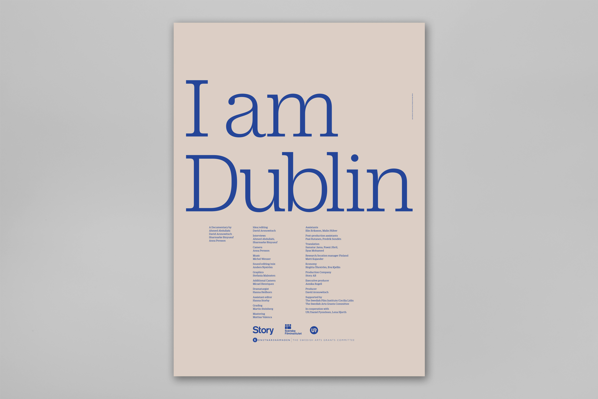 Poster for a short documentary about Ahmed, living in hiding in Sweden. Directed by David Aronowitsch and produced by Story. Through the Dublin Regulation the EU has created a group of young people drifting around Europe. The so-called Dublin-cases are deprived of rights and thrown out from country to country in Europe. The content and the title of the film, rather than the limited budget, suggested a typographic solution.