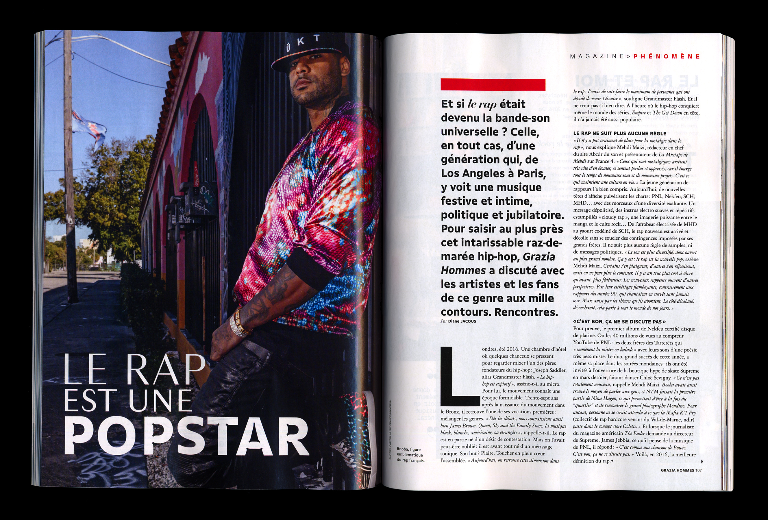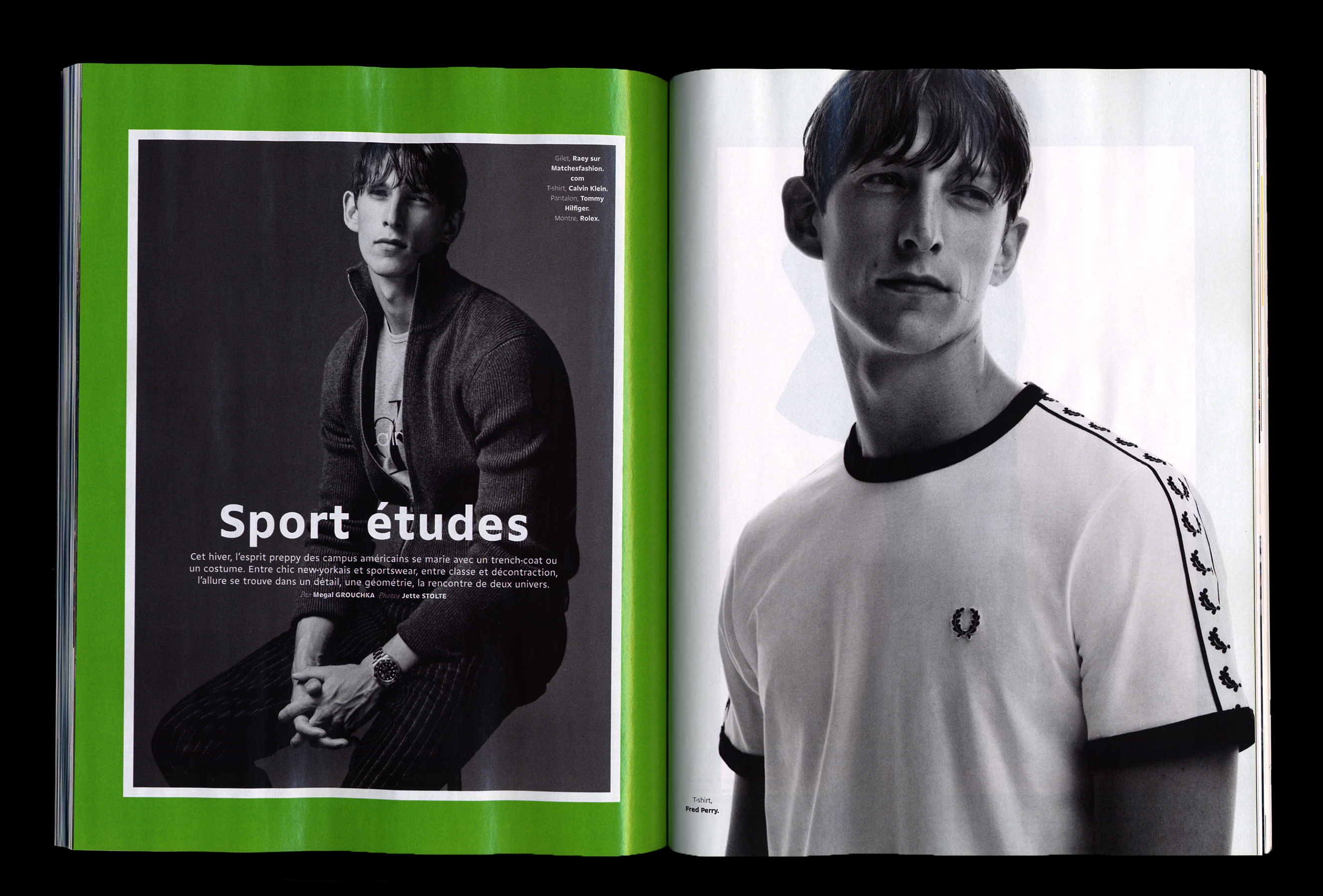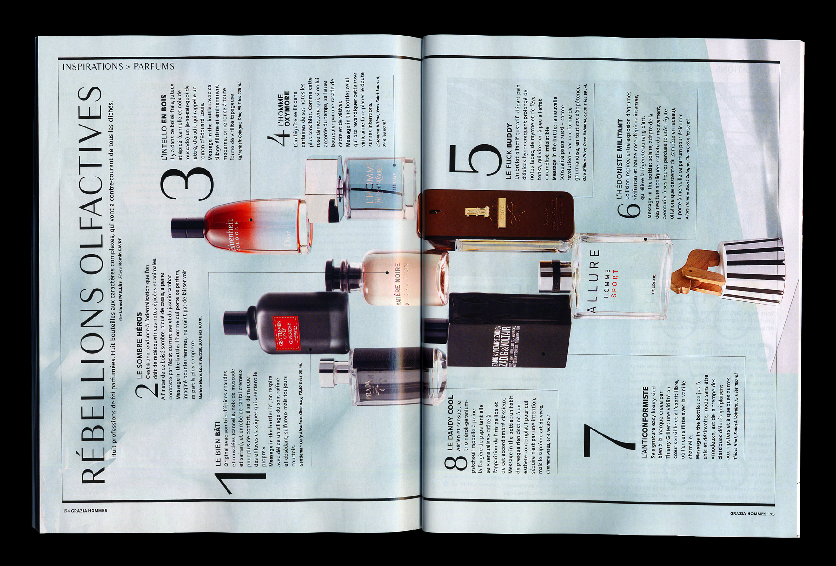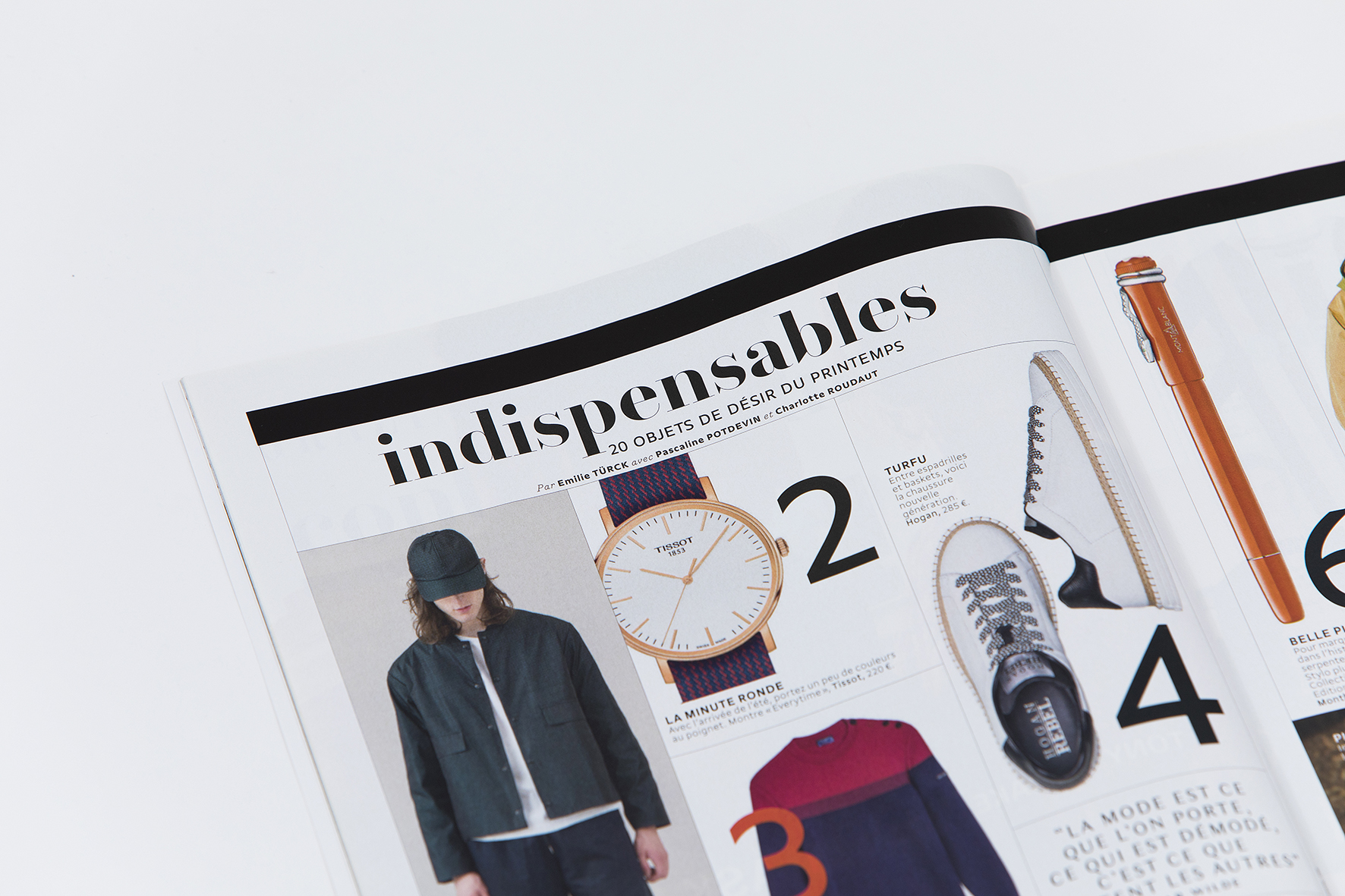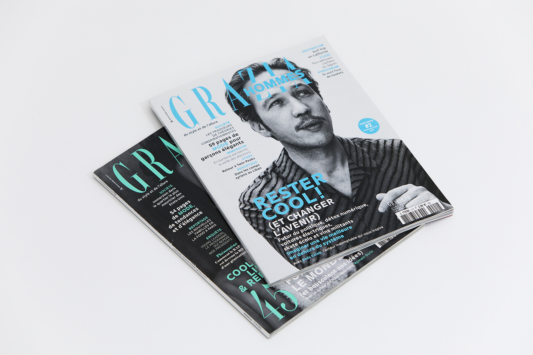 New mens’ edition of leading fashion magazine Grazia debuted with a florilege of Production Type’s finest. Art director Adrien Pelletier combined Trianon for elegant titles and pull quotes, Granville for opening pages and subtle details, and the full collection of Gemeli for complex combinations (Gemeli, the foundry’s most accessible sans serif; Gemeli Micro, with prominent inktraps; and Gemeli Mono, the fixed-width sibling). The main text is set in a more classical American Garamond.