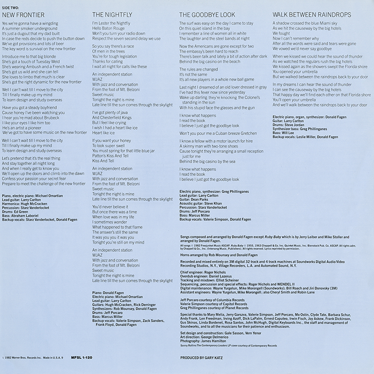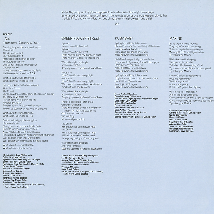 Lead singer and co-founder of Steely Dan, Donald Fagen offered his first solo album, The Nightfly, in October 1982. The album is a nostalgic rendering of late ’50s/early ’60s jazz-infused pop. Fittingly, the typeface on the cover—News Gothic—is one of the more popular of the era.