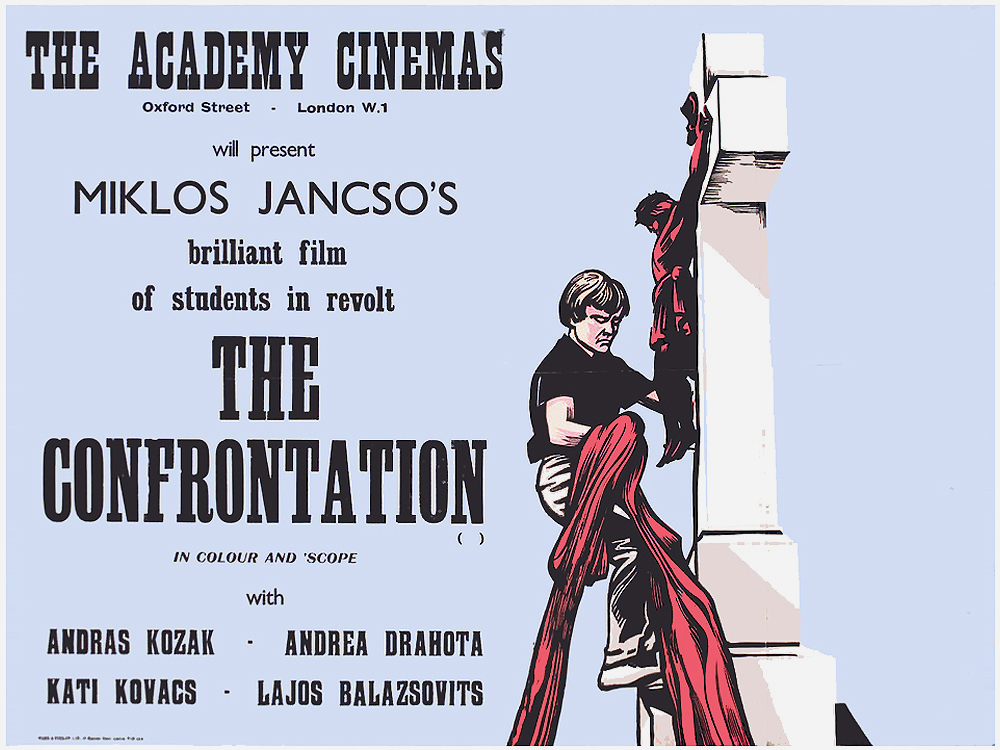 The Confrontation (HU 1969) — More Playbill, SB Grotesque, Gill Sans, condensed Clarendon and other unidentified faces. “In colour and ’scope” is in Britannic Italic. There are several digitizations, but none of them includes the italics. For the actors’ names, see The Godfather’s Haunted Lineage.