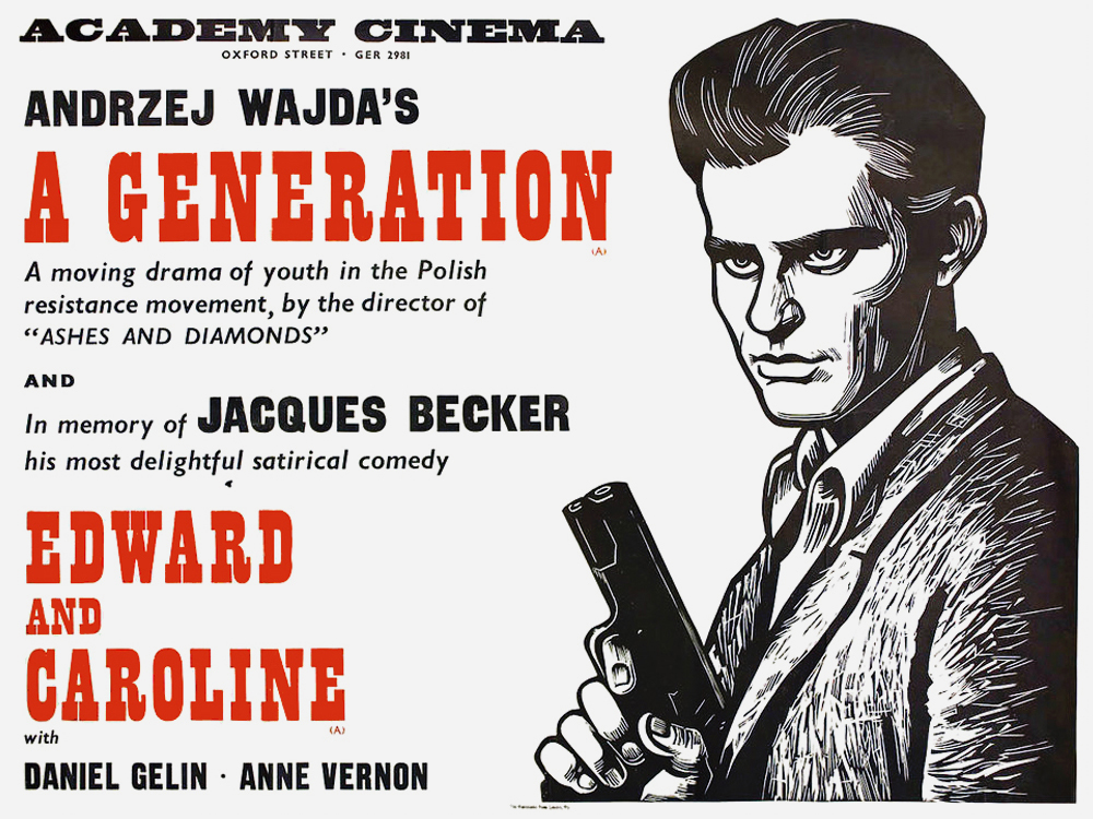 A Generation (PL 1955) and Edward and Caroline (FR 1951) — The red caps appear to be from Playbill, Stephenson Blake’s reinterpretation of 19th-century “French Antique” wood type – a face that also appears on other posters of the series. Among the smaller types, there is Gill Sans Italic.