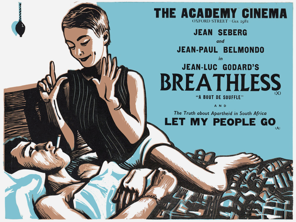 Breathless (FR 1960) — The title is set in caps from Albertus, with charmingly unbalanced spacing. The bold gothic caps used for “The Academy Cinema” and elsewhere in the series exhibit qualities that have been captured in contemporary anthologies/reinterpretations like Rhode, Knockout or Champion Gothic.