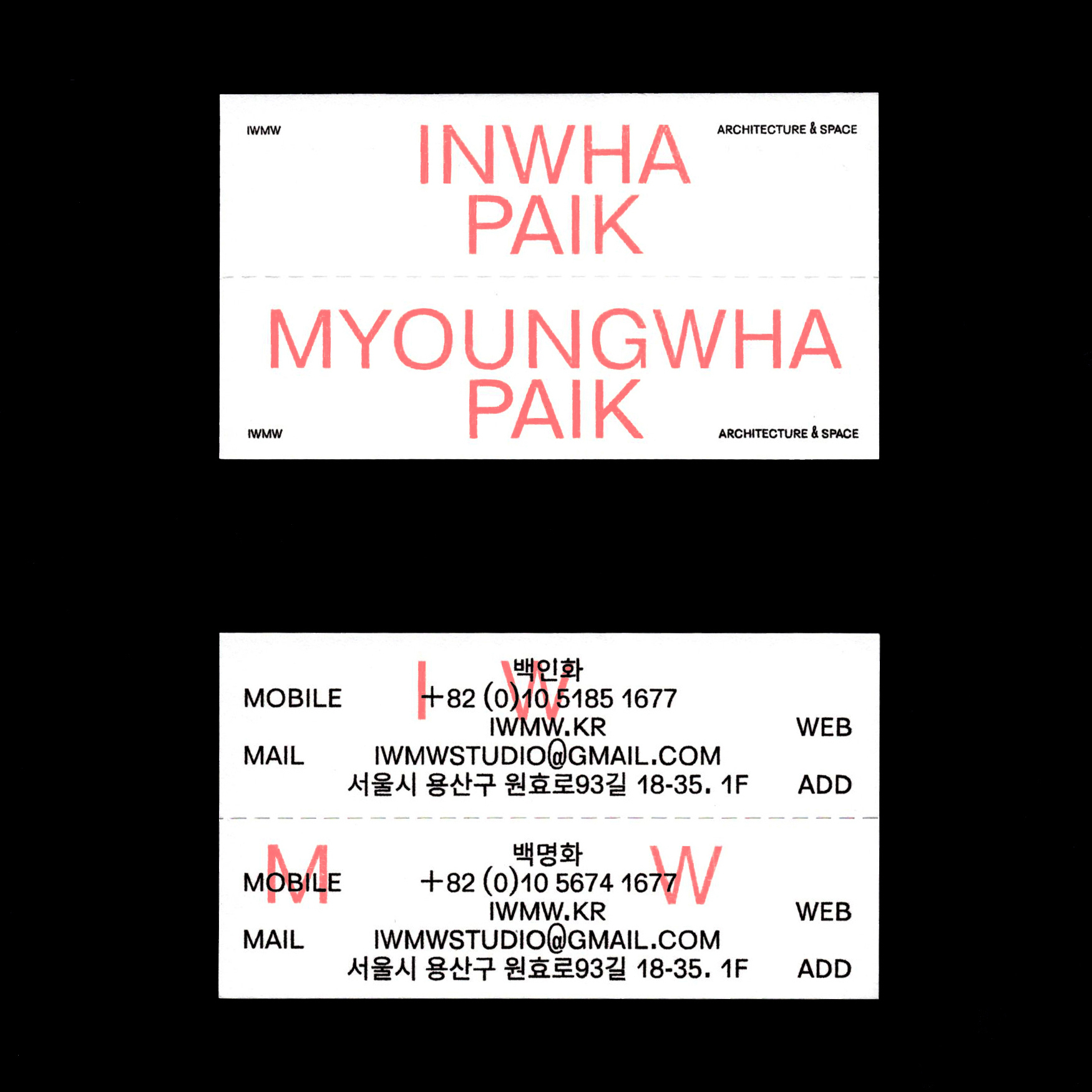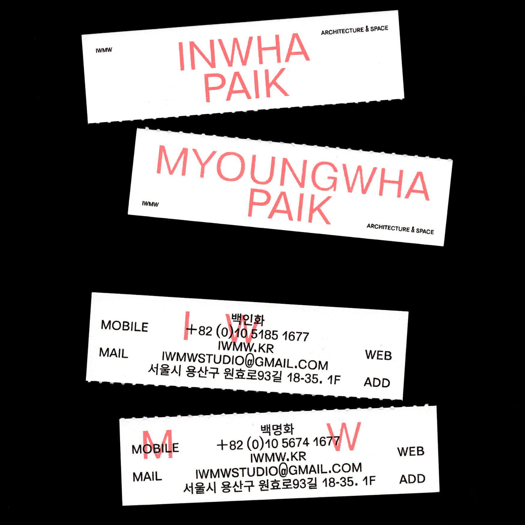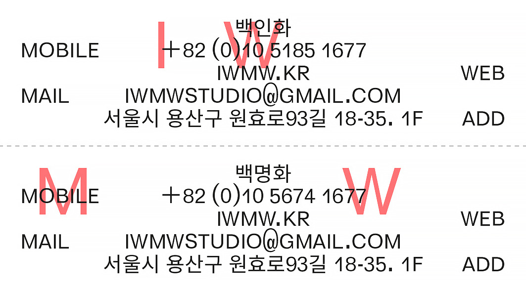 IWMW business cards Contributed by Benoît Bodhuin on Aug 28th, 2017. Artwork published in 2017. License: All Rights Reserved. Design by O hezin for Korean space design studio IWMW with Elastik type License: All Rights Reserved. License: All Rights Reserved. License: All Rights Reserved. Typefaces More about ElastikGet ElastikMore about unidentified typeface Formats Branding/Identity (8368) Topics Home/Interior (815) Architecture (1399) Designers/Agencies OYE (6) Tagged witharchitecture (512)interior design (192)furniture (227)business cards (1522)red and black (1133)all caps (7517)multiscript (887)Korean/Hangul (language/script) (149)only type (1272) Artwork location South Korea (208) Seoul (143) In SetsTYPE (Dunya Ahmad) (361)bb (Leonardo de la Fuente) (1331)fonts (yee jeon) (6)business cards (Philippe Lepilleur) (38) Post a comment Name Email – will not be published Website Your response Submit Comment More Elastik in use Hellavision final edition2019Peter SteineckContributed by Benoît Bodhuin Jardin Cc. 2023Arnaud AubryContributed by Arnaud Aubry Staff Pick Central Saint Martins MA Graphic Communication Design degree show 20182018Mátyás CzélCristina ErreaRikke LinnebergContributed by Mátyás Czél Sponsor More in Architecture Crafting Modernity: Design in Latin America, 1940–1980 exhibition at MoMA2024MoMA Design StudioKevin BallonJade WangContributed by Jade Wang Exclusive Construction Groupc. 2022Limber BrandsContributed by F37® Holzschopf und Betonklotzc. 2016Luzi GantenbeinContributed by Luzi Type Expressway Studios2020General ProjectsArchitecture 00A Common PurposeContributed by Gareth Hague Staff Pick More in Branding/Identity Wildfolkc. 2019Caroline O’DonnellContributed by Caroline ODonnell The Tudors: Art and Majesty in Renaissance England at Legion of Honor2023Lizzie BaurMeghan MoranKate AgarwalContributed by Lizzie Baur Staff Pick Théâtre Joliette, Season 2023/20242023Super TerrainContributed by Oudin Romain Theater und Philharmonie Essen (TUP) 2023/20242023Bureau Mario LombardoContributed by VJ-Type Staff Pick More Fonts In Use Sandan’s signc. 1970unknownPhoto(s) by Stephen Coles on Flickr. Staff Pick 2025 GMA Canada International Residency Presentation poster2025ApepperContributed by Alex Slobzheninov Staff Pick Bickel–Dafi exhibition poster2025Dafi KühneContributed by Dafi Kühne Staff Pick Centre de Création industrielle poster series, 1969–71c. 1970Jean WidmerContributed by Stéphane Darricau Staff Pick