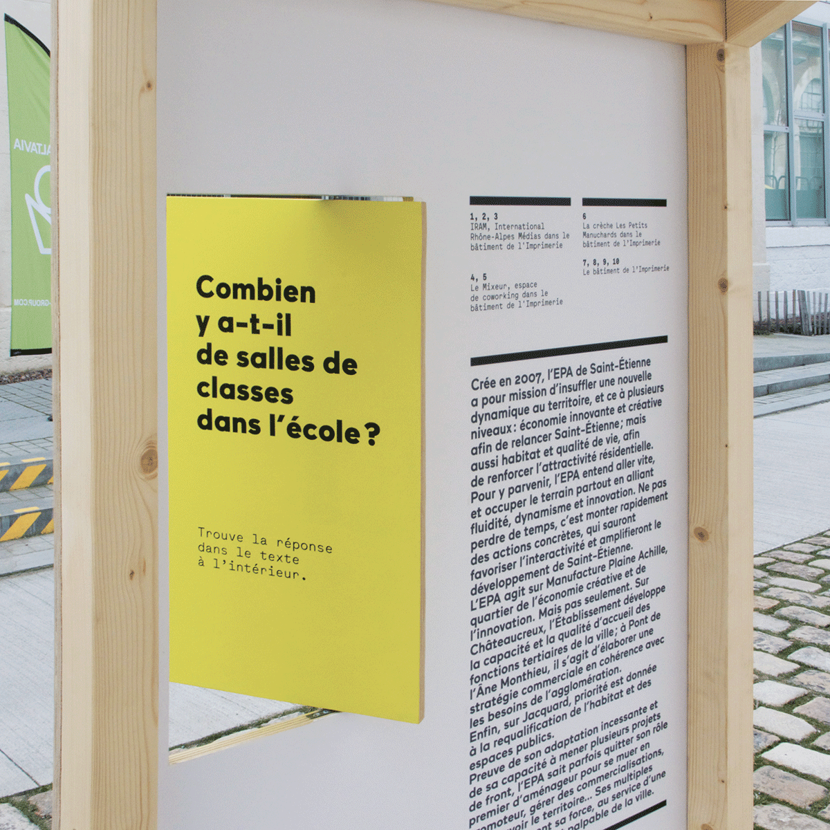 Made in collaboration with Sara de.Gouy (designer, architect) and In medias res (editorial agency) for l’Établissement public d’aménagement de Saint-Étienne, and presented during the Saint-Etienne International Design Biennial 2015: