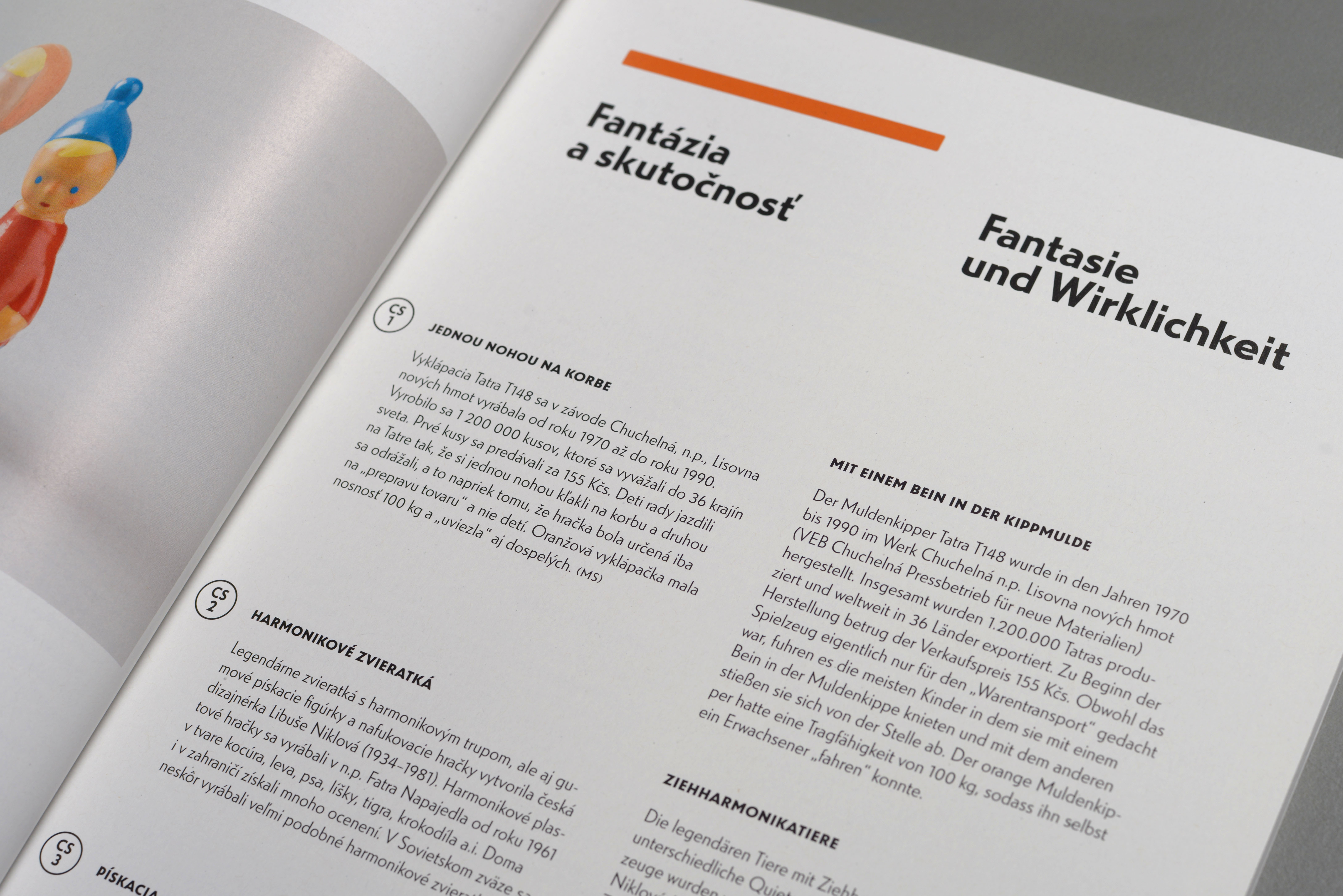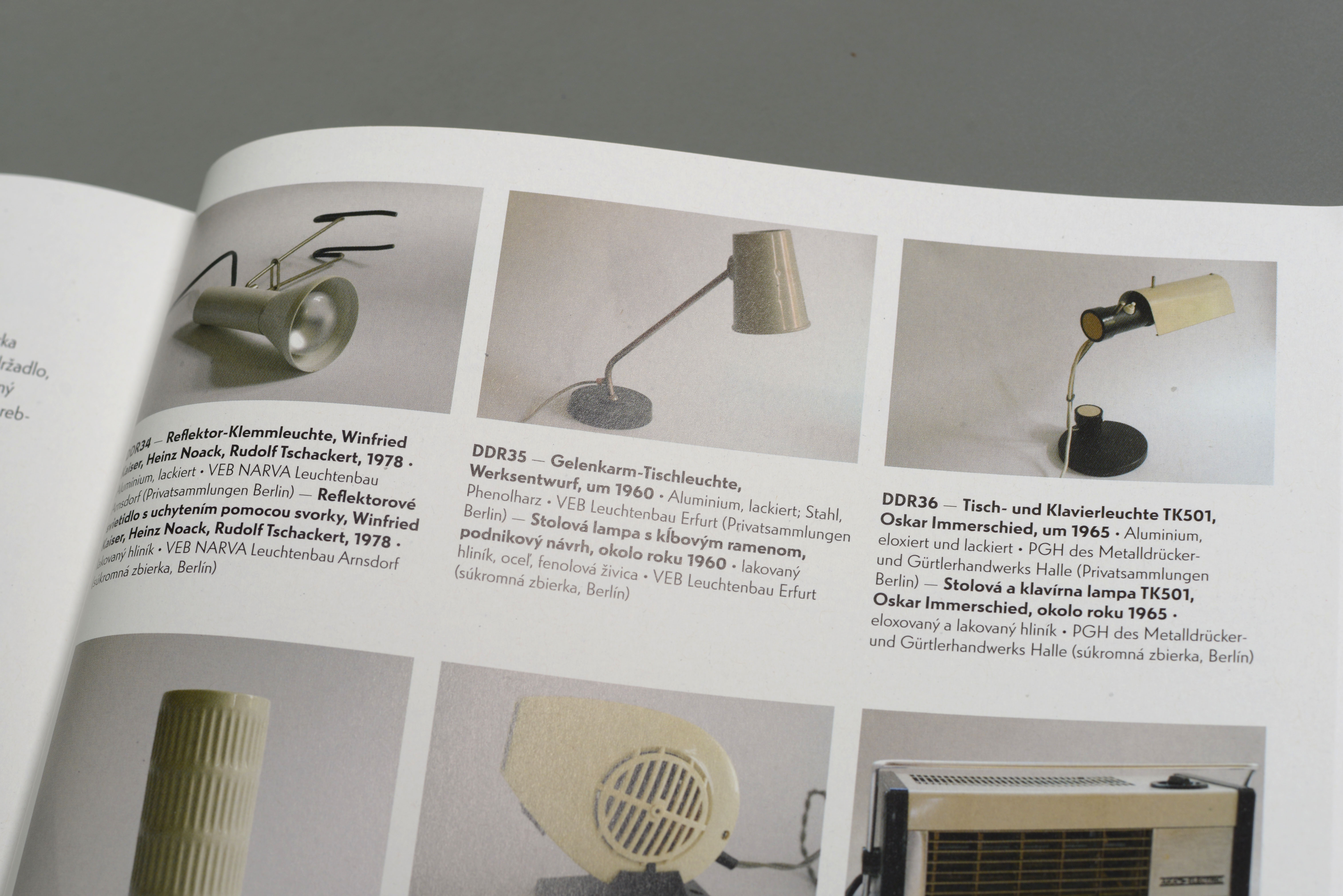 The exhibition Colorful Grey (Farebná šeď – Buntes Grau) presented the product design created in the 1960s and 1970s in two already non-existing countries: ČSSR (Czechoslovakia) and DDR (German Democratic Republic). Organised by the Slovak Design Center, and Museum Europäischer Kulturen and Werkbundarchiv – Museum der Dinge, the exhibition highlights a living room and a kitchen with authentic home tools and furniture used in period. The exhibition uses Uni Grotesk, a adaptation of Universal Grotesk distributed by Grafotechna, a conglomerate Czechoslovak type foundry established in 1951 that was ubiquitous in former Czechoslovakia, but has German roots based on matrices by Wagner & Schmidt, Leipzig, cast and sold by Norddeutsche Schriftgießerei, Berlin as Kristall-Grotesk. Typotheque has published an article on the history of Universal Grotesk.