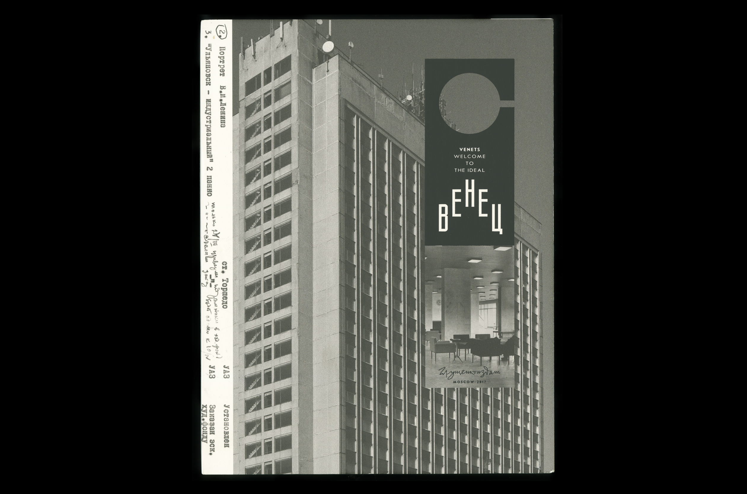 Hotel Venets was part of a larger complex of buildings, that were specially constructed to mark the anniversary in Ulyanovsk, a small Soviet town formerly known as Simbirsk, renamed in honour of its most famous son, Lenin (born Ulyanov). A photo album discovered amid the archives of the local history museum, published by the Leningrad architects who designed the hotel, contained photographs of the hotel when it first opened, revealing its original interiors. During its 47 years of operation, the hotel underwent many distinct renovations. For the exhibition Space Force Construction, I used one of these photographs as a reference for reconstructing a three-room luxury suite within the palazzo in Venice. Accompanying this is a selection of postcards featuring photographs of today’s Ulyanovsk, titled Ascension to ‘Olympus’ (a rooftop bar called “Olympus” recently opened in the Venets). These images capture my experience of travelling to Ulyanovsk on the eve of the centennial anniversary of the October Revolution. Checking into the hotel, I worked my way up from the first floor to the very top, spending one night in each room, until at last, on New Year’s Eve, I reached ‘Olympus’.