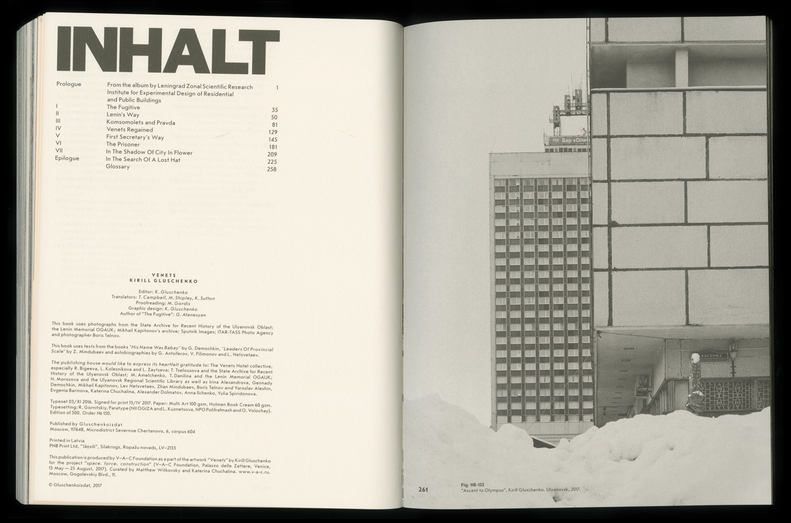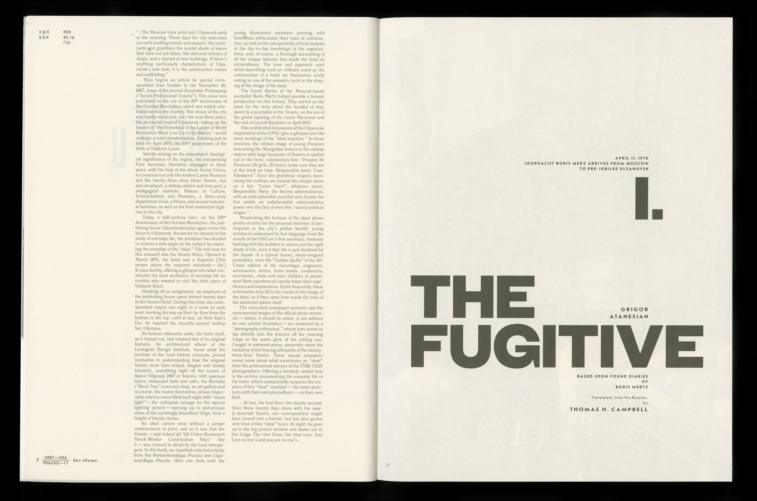 This wonderful book documents the architectural results of another Soviet anniversary – the celebrations of the centenary of Lenin’s birth in Ulyanovsk, formerly Simbirsk, the small city on the Volga where he was born. Told by the authorities in Moscow that the ‘door would be open’ for them to modernise their mainly wooden, one-storey, Tsarist city for the duration of the celebrations, and that they’d close it immediately when it was over, the local Party rushed to build a Museum, a Library, a Palace of Culture, housing, an Airport and the high-rise Hotel Venets before the tap of money and resources was turned off. In its first year of opening, two Poles, 70 Britons, and more than 3,000 East Germans arrived to stay in the Hotel Venets, and we get to read the inventory of difficult questions they answered (‘can we see how people live in those little wooden houses?’), and find out how hotel staff took it out on the guests. — Owen Hatherley, The Architectural Review