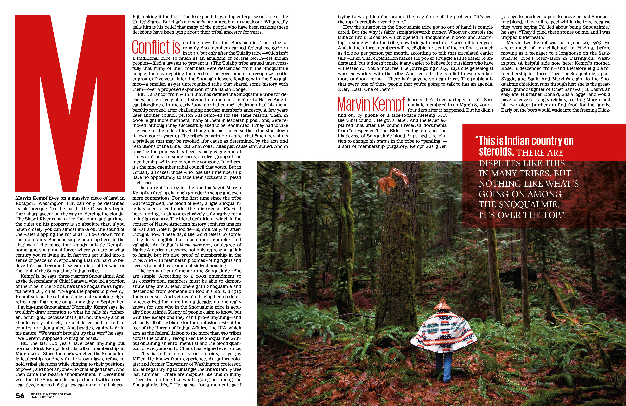 In 2013, toward the end of my time designing Seattle Met magazine, I introduced Giorgio. Looking back on my work, it seems like I was trying to freshen things up without going through a full redesign. It started from a pure place: I wanted a condensed sans because Colfax, used throughout the magazine, didn’t have one. But I knew I was tempting fate, because I’ve always felt like condensed faces are an easy way out for editorial design, almost like cheating — they’re all too happy to squeeze in and save you. For instance, the “Bad Blood” opener. It’s not really doing anything but it’s nice and big and doesn’t spoil the stunning photograph. That said, Giorgio and Giorgio Sans were designed for a specific magazine and purpose — “bringing runway proportions to the page in contrasting ways” — and I think it’s impressive that they made italics for both typefaces (which was a big selling point for me). So my opinons about using condensed fonts is a critique on designers who reach for them in times of need, as I did. But hey, when the clock is running down on the monthly production cycle, they sure do save a lot of time.