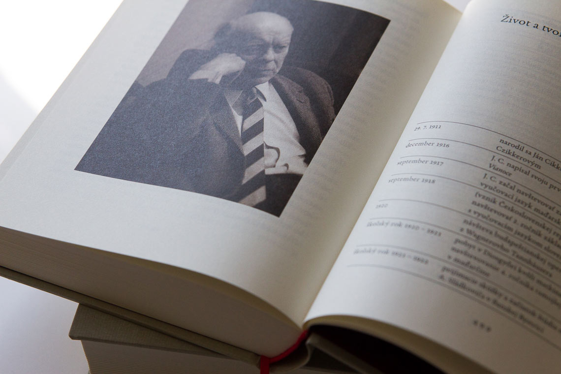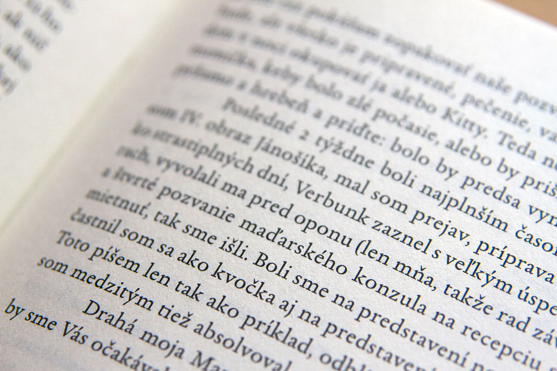 The publication was designed by Ladislav Tkáčik, using Xavier Dupré’s Garalda throughout the book: “I was looking for a script that would be suitable for extensive texts, complex, with musical finesse, traditional, Renaissance and also modern, like the modernist compositions of Ján Cikker, who tried to redefine the musical tradition … Both the layout and the chosen font do not want to dominate and push over the text, on the contrary they want to retreat to the background and let it sound without obstacles… I chose Garalda just because of that.”