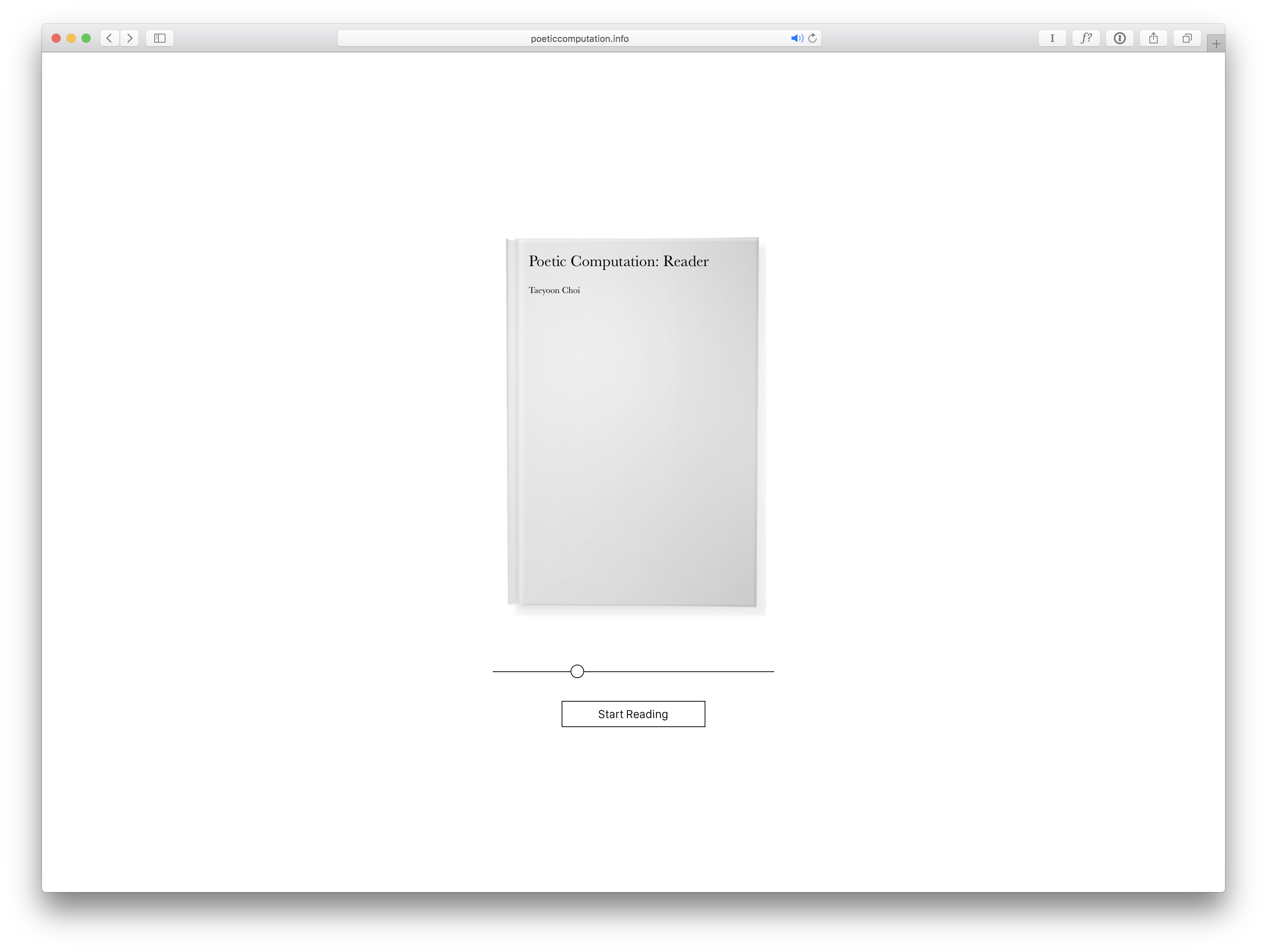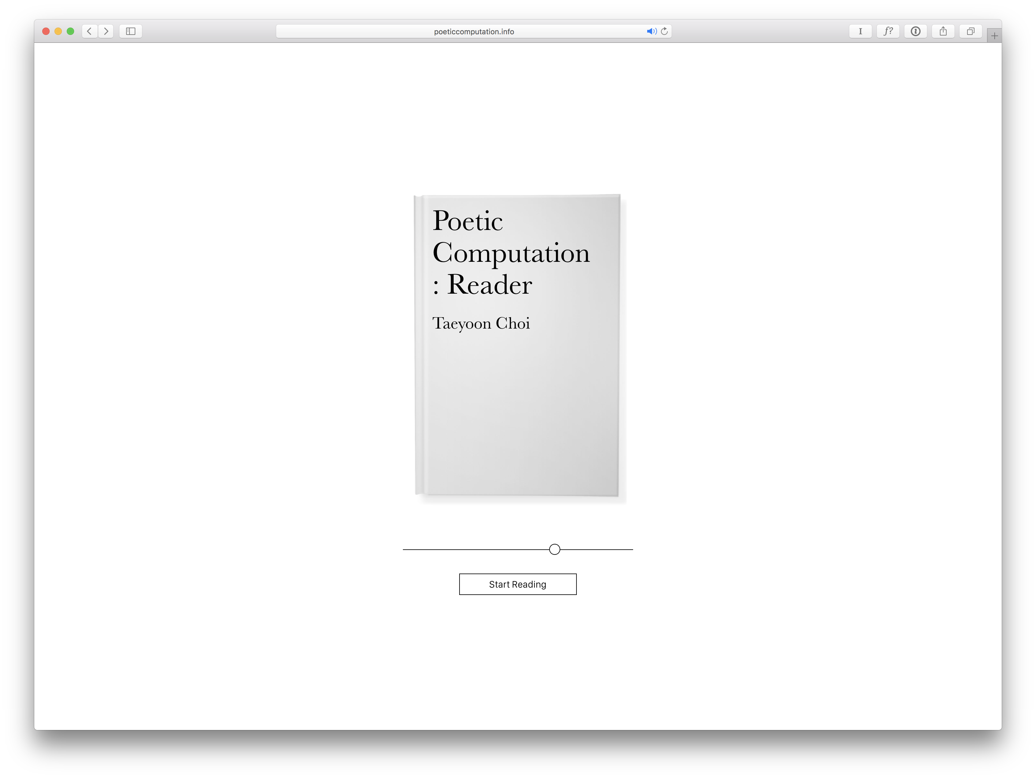 Poetic Computation: Reader is an online-book by Taeyoon Choi that discusses code as a form of poetry and aesthetic while raising ethical questions associated with it. The book is based on Choi’s lectures at the School for Poetic Computation, an independent school he co-founded in New York City. The first two chapters will be published in September 2017, with the following chapters to be published over the year.