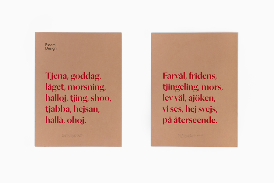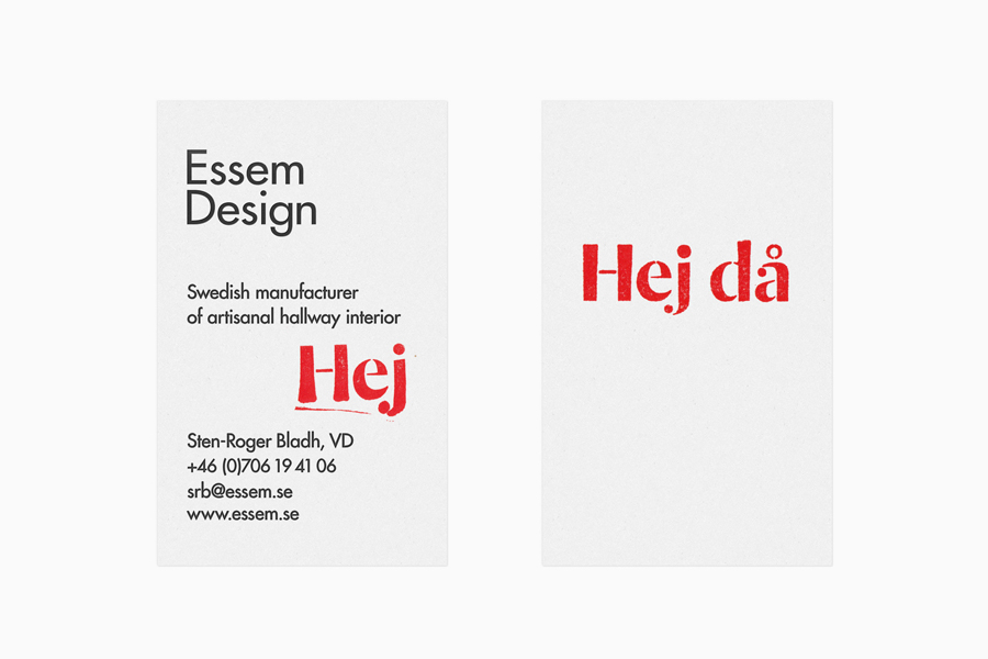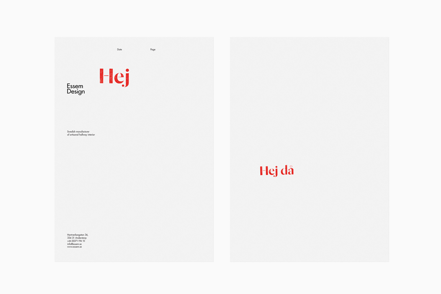 When conciving a new identity for the company, Swedish Bedow used the greetings “Hej” (hello) and “Hej då” (goodbye). The phrases are physically stamped on stationery in Dala Moa. Stencil forms, ink spread and artisan meet a striking red and create a fun yet professional identity. In many ways it is an evolution of the studio’s previous work for the company, where they used Dala Moa’s companion Floda for packaging.