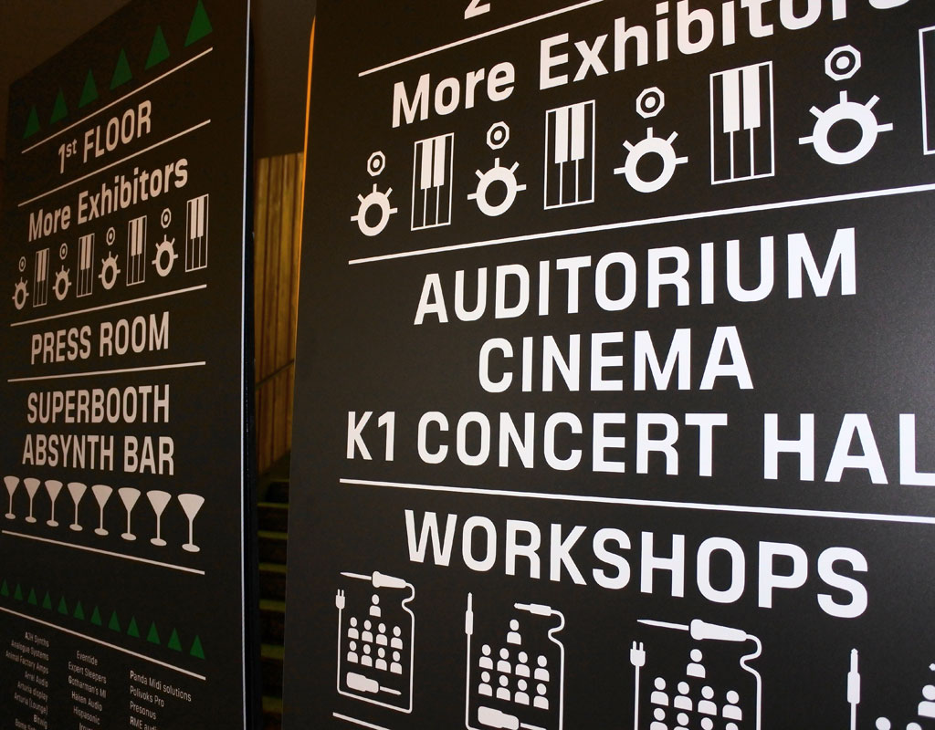 Superbooth 17 Contributed by verena gerlach on Oct 18th, 2017. Artwork published in 2017. License: All Rights Reserved. Signage and corporate typeface for Superbooth, the annual synthesizer fair by SchneidersLaden. License: All Rights Reserved. License: All Rights Reserved. License: All Rights Reserved. License: All Rights Reserved. License: All Rights Reserved. Typefaces More about FF SizmoMore about FF Sizmo Line Formats Signs (2143) Branding/Identity (8451) Topics Event (3216) Music (6364) Designers/Agencies Verena Gerlach (6) Tagged withSchneidersLaden (2)synthesizers (25)audio equipment (68)musical instruments (84)fairs (31)programs (637)arrows (762)pictograms (200)wayfinding (383)uses by the typeface’s designer (1261)early uses (2240) Artwork location Germany (3871) Berlin (1151) In SetsType Designs by Women (Fonts In Use Staff) (1887)Designs by Women (Fonts In Use Staff) (3587) 1 Comment on “Superbooth 17” Florian Hardwig says: Oct 18th, 2017 9:12 am See also the banner for SchneidersLaden at Kottbusser Tor, using Verena Gerlach’s Tephe and Vielzweck. These two typefaces were now replaced with a revised version that combines them into one typeface family named FF Sizmo. Post a comment Name Email – will not be published Website Your response Submit Comment More FF Sizmo in use Francis Kéré: Radically Simplec. 2017Verena GerlachContributed by Laïc: Type Foundry Staff Pick Häger Flemmig Architekten2016Lennart HägerContributed by verena gerlach Kopublikacja2015PillcrowContributed by verena gerlach Sponsor More in Event Snapshot (Flow Festival)2018Joosung KangOona ViskariContributed by Benoît Bodhuin Staff Pick 9a Rassegna Biennale d’Architettura catalogue and poster2019Think Work ObserveContributed by Forgotten Shapes Fancy Bizarre Brute. New German Design of the 1980s2014Gerwin SchmidtContributed by Florian Hardwig Staff Pick Live Magazine No. 2, “DesignThinkers 2019”c. 2019FrontierContributed by Brian Sholis More in Signs District of Tofino identity2021Sarah TaliunasContributed by Alanna Munro Elmina restaurant by chef Eric Adjepong2024PolygraphContributed by O'Plérou The Garda Memorial Garden2012Anne BradyVermillion DesignContributed by Letters from Sweden Le Sancerre, ParisPhoto(s) by Jean François Porchez on Flickr. More Fonts In Use The Pachinko Factoryc. 1978unknownContributed by Grant Hutchinson Staff Pick Byline, Issue 08, “Beauty”2024Madeline MontoyaBylineContributed by Margot Lévêque Typefaces Staff Pick Heritage: A User’s Manual2016BondContributed by Richard Baird Staff Pick Zweikommasieben #102014Präsens BüroContributed by Love Lagerkvist Staff Pick