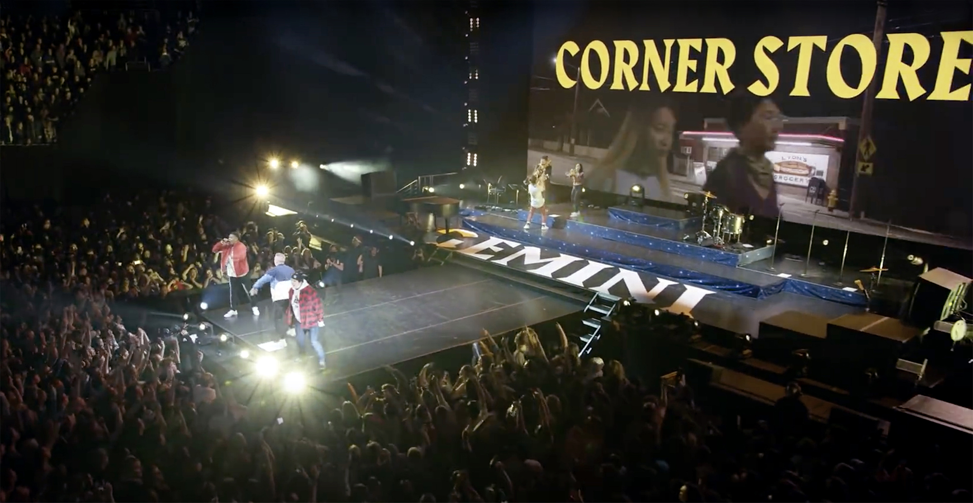 Stage and screen graphics — Corner Store, December 22, 2017 at the Key Arena, Seattle