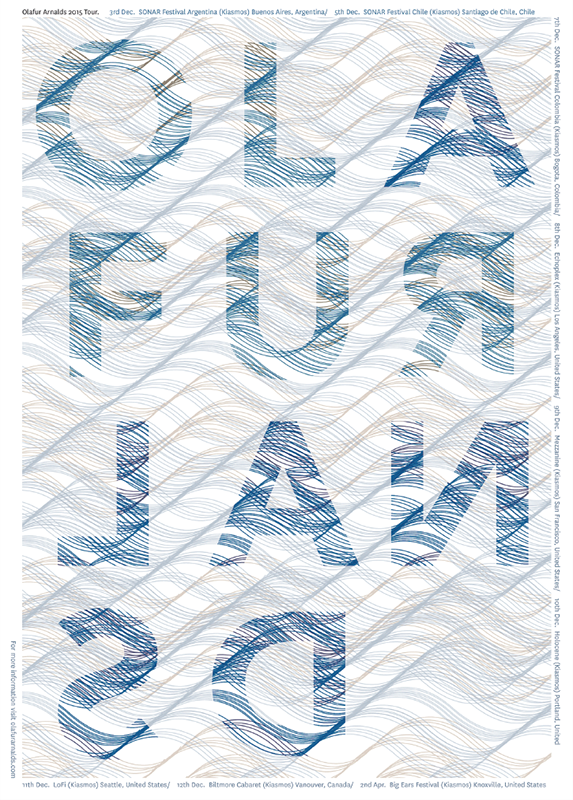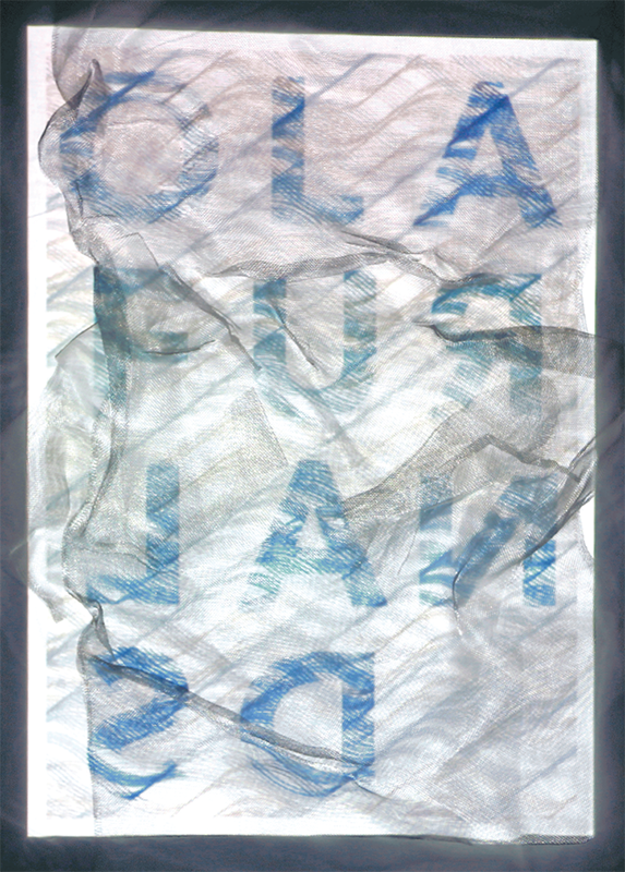A visual response to the work of Olafur Arnalds, the pianist, producer and composer. For some of his performances he uses the voice of the audience and incorporates it into a loop, creating a unique tone for each space. To echo how atmosphere affects the music in an audio space, I projected his poster onto wire, so it would be responsive in its own unique physical space.