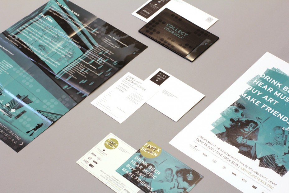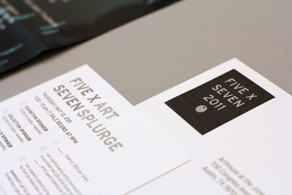 Five x Seven 2011 marked the 12th Year of Austin’s most celebrated art benefit. In an effort to recapture the glitz and the glamor of the event, re-imagined within the context of Arthouse’s incredible new building, we developed an identity for the 2011 installment that felt like a party – like a real occasion – to help grow the energy inherent in Arthouse’s return to 700 Congress Avenue.