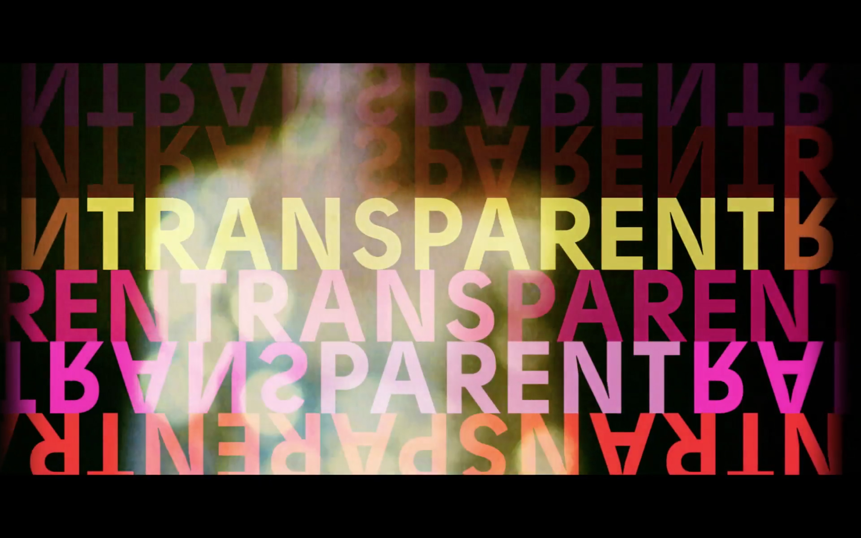 The opening credits of Transparent are created by filmmaker and artist Rhys Ernst, who is also a producer of this Amazon web series. Reflecting the main narrative of the latter, the title sequences investigate transgender identity. “Like a 45 second art film” they are assembled from original footage iterating each season’s themes. The title of the series is written out in Solomon Black, the production details listed in ITC Bookman Italic with enlarged swash caps.