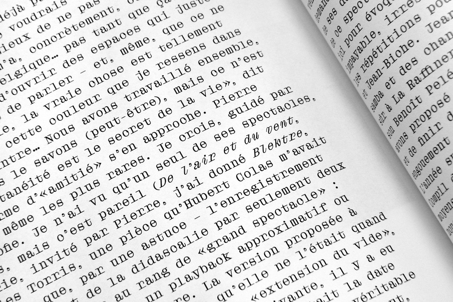 The Droulers typeface was designed by Bureau Brut for a retrospective book on the life and work of the dancer and choreographer Pierre Droulers. It originates from printed matter found in his personal archive and in particular some notes written with a typewriter. Questioning both the specific rhythm and shapes of typewriter fonts, the design is inspired by the distortions and accidents generated by this technique (letters clogged with ink, counterforms that are closing in and so on). Since October 2017, Droulers is available for licensing from extrabrut.shop.