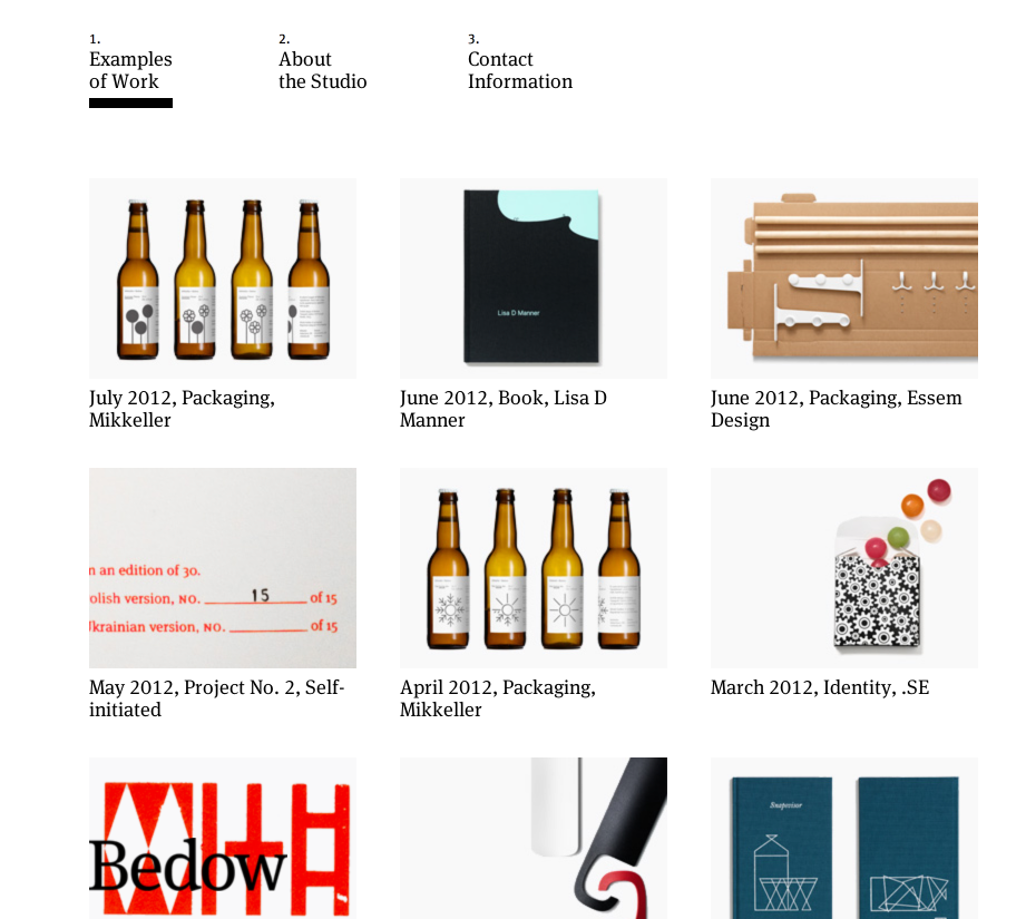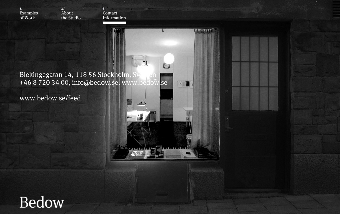 The website of Swedish design studio Bedow is nothing more than a very simple grid of images and type. When the type is as good as FF Meta Serif, that’s all you need. They specify Lucida Bright as the fallback font — an uncommon and appropriate choice.
