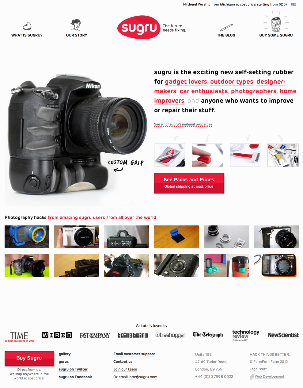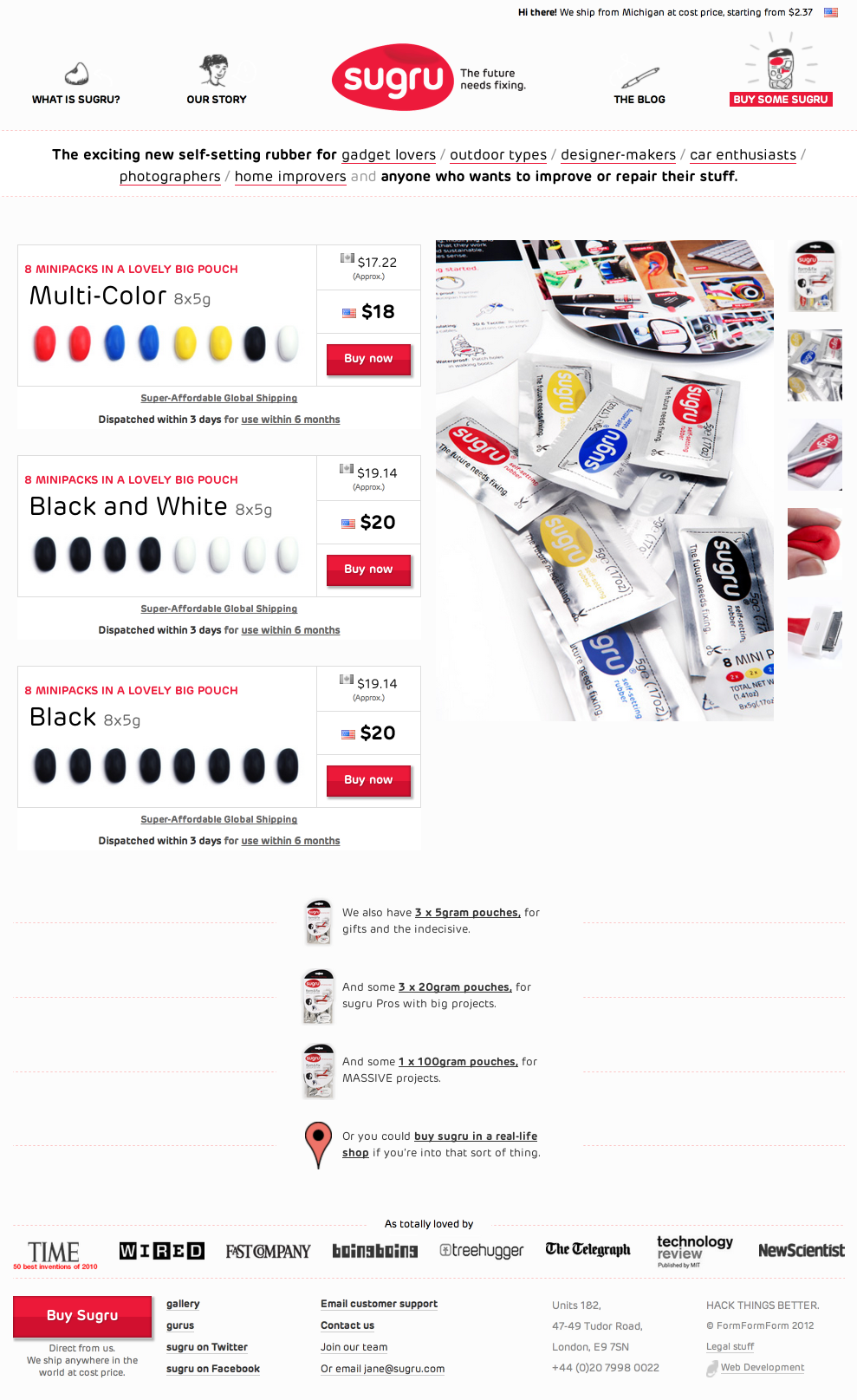 Sugru is an air-curing rubber that can be formed by hand — kind of like a serious Silly Putty. It bonds to most materials and turns into a strong, flexible silicone rubber overnight. The young company just rebranded with the help of Atto Partners. The identity is built around Rubrik, a typeface with soft contours but a rigid structure, echoing the properties of the product itself. The friendliness of the type also reinforces the selling point of Sugru: quick and easy fixes to everyday problems, no professional experience required.