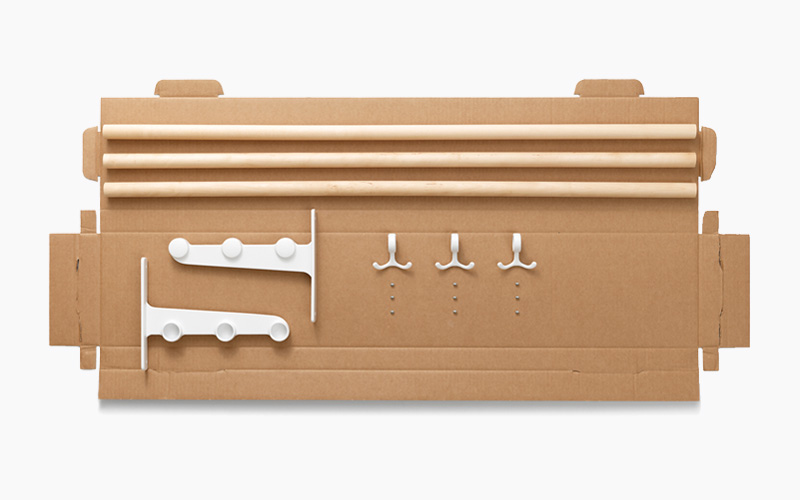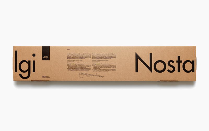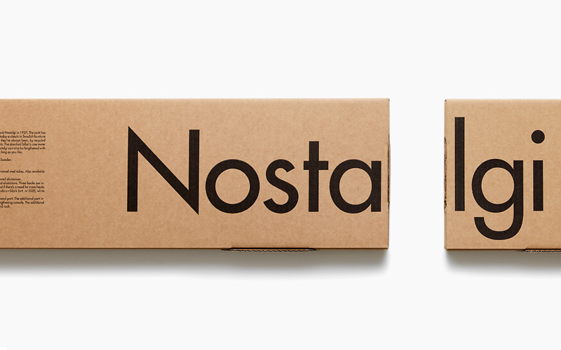 Packaging for the rack Nostalgi by Essem Design. The classic rack, which was designed in 1937 by Gunnar Bolin, comes in several different materials and lengths. The standard rack measures 1,000 mm, but can with an additional console be extended into infinity.