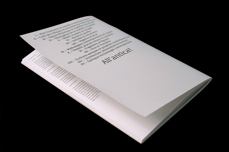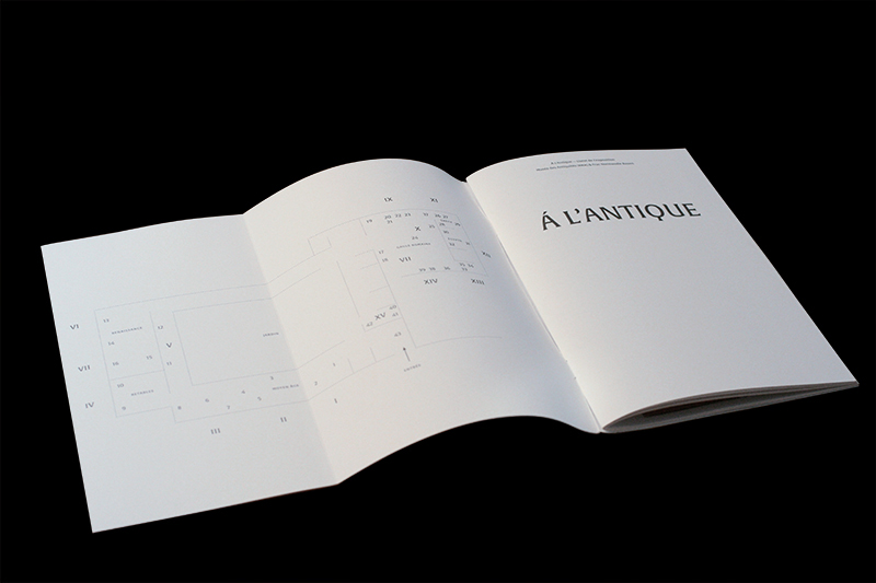 In À L’Antique (French for “in the antique manner”) Frac Normandie Rouen and Musée des Antiquités Rouen bring together contemporary art and masterpieces from the antiquity. The exhibition is structured in fifteen chapters, going from ancient funeral rituals to archeology as a practice for contemporay artists. The texts are are composed in Gerard Unger’s Alverata, an interpretation of romanesque letterforms. Designed by Jérôme Knebusch. The full booklet can be read here (texts in French).