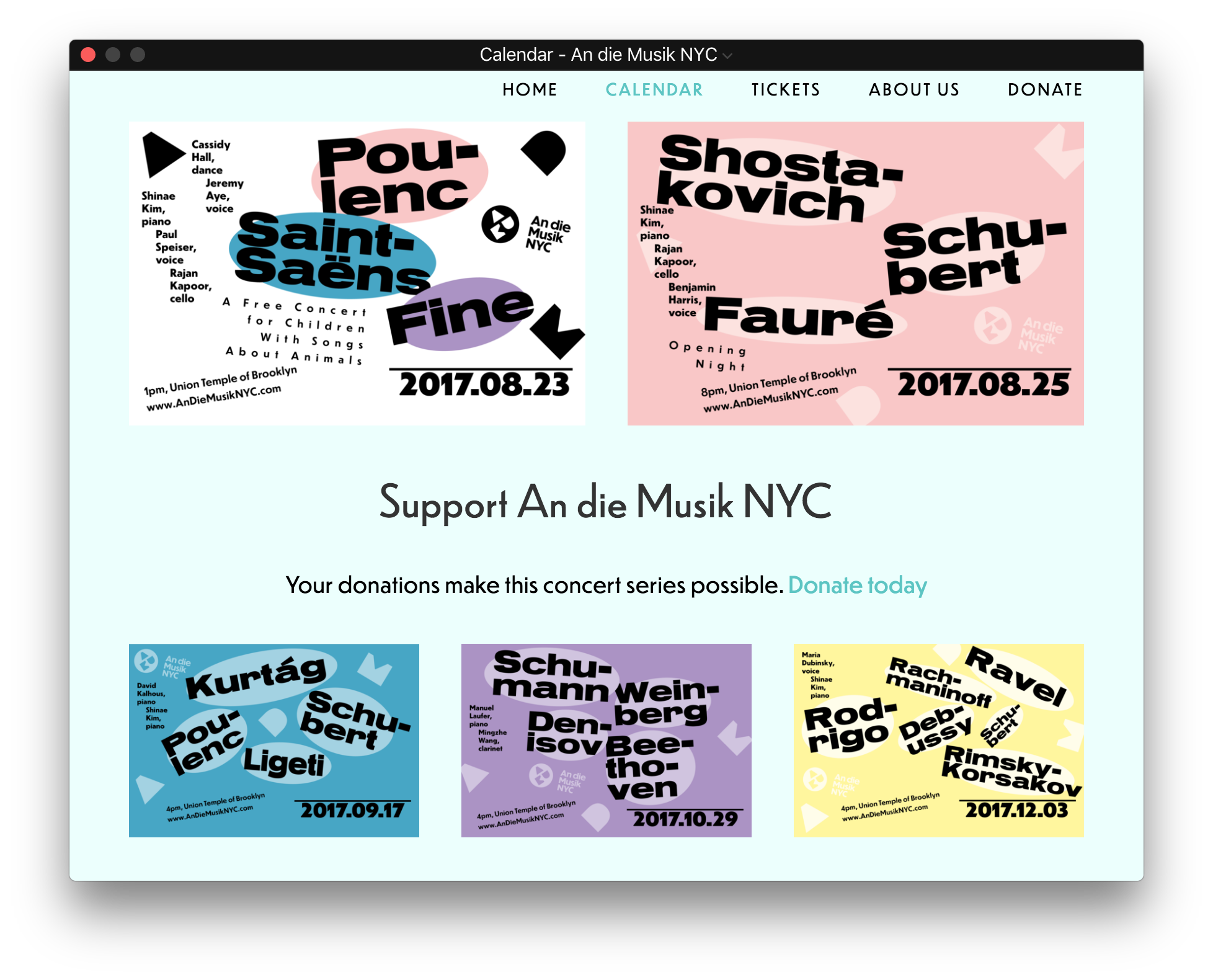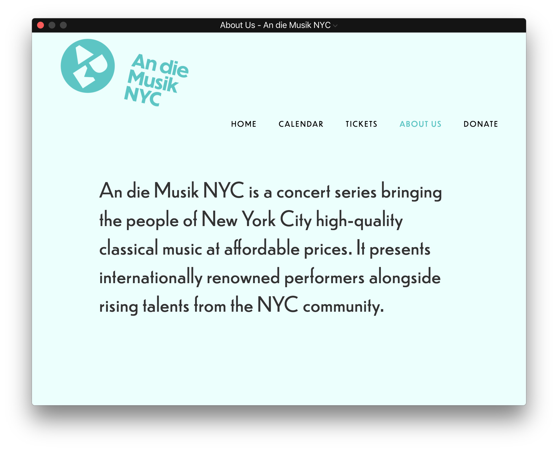 An die Musik NYC is a concert series bringing the people of New York City high-quality classical music at affordable prices. It presents internationally renowned performers alongside rising talents from the NYC community.