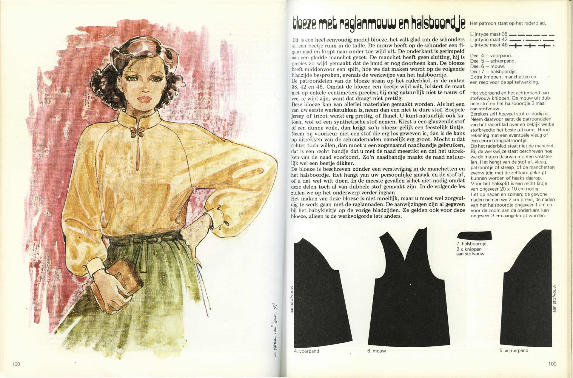 Edit: Zelf Kleding Maken is a true DIY project. It was conceived, written, directed, designed photographed and layed out by Henriëtte Beukers and her husband Henk Beukers, who met at art school, and worked together ever since. In order to be able to produce this book themselves, the family bought an IBM Selectric Composer (at the cost of half a house), and with the help of their son and design student Haico and a few others, this book was produced in a few months time.