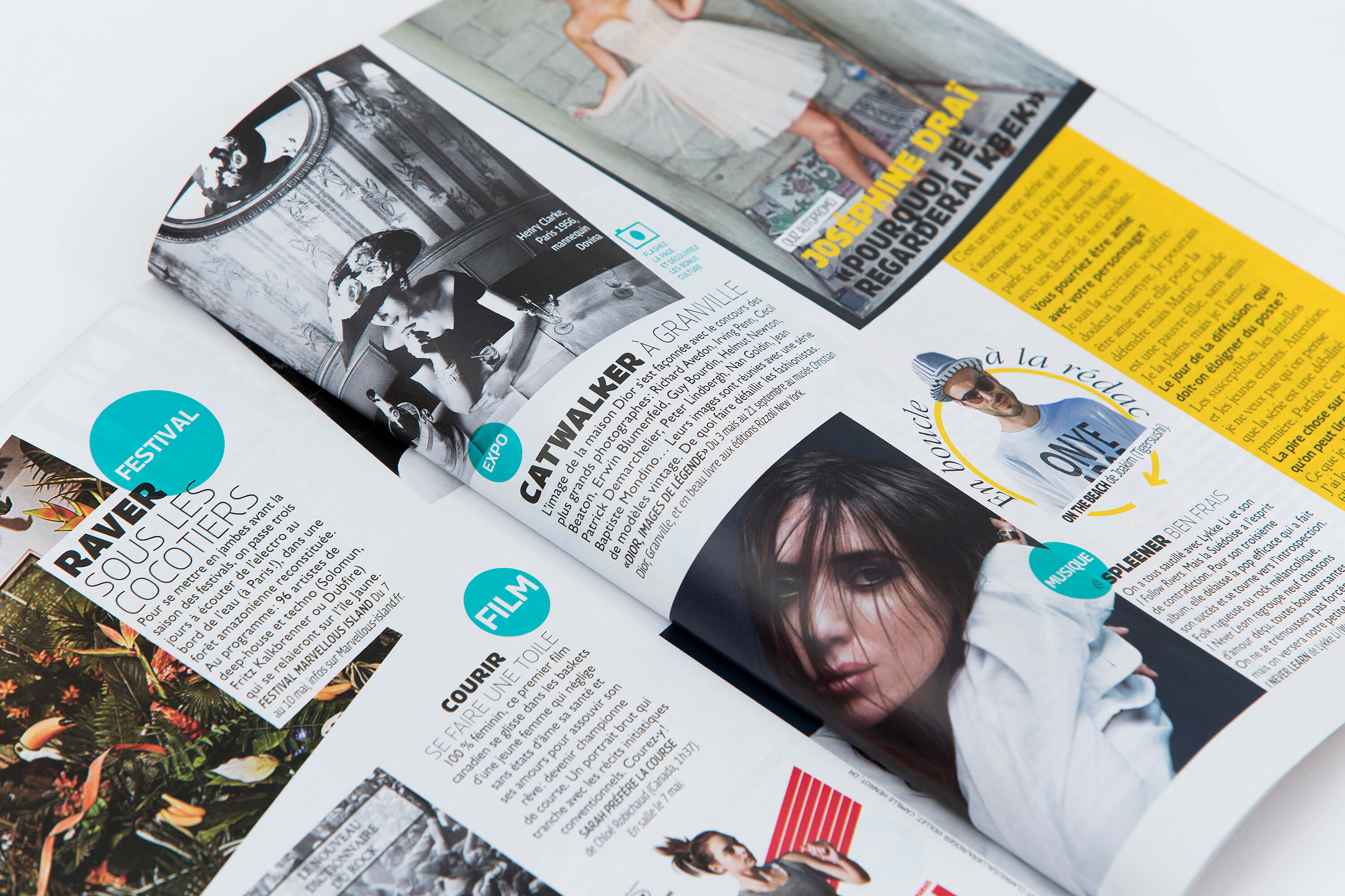 With its 8 weights and 6 widths (and matching italics), Panorama allowed him to create a playful layout, using multiple widths across the page and mixing weights in title and features to create contrast. The letterspacing is sometimes very tight (letters are even touching) and sometimes extra loose, to add some more rhythm.