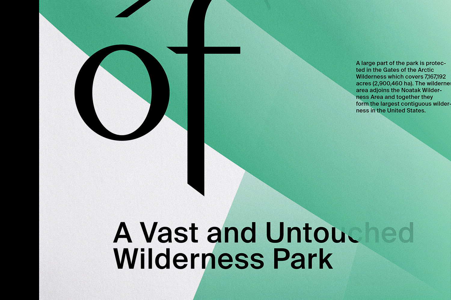 The “Gates of the Arctic National Park” poster was designed by Pouya Ahmadi for an exhibition titled Type Hike to celebrate the centennial of America’s National Parks. While the large words are in a custom typeface, Ahmadi used Suisse Int’l for all smaller type.