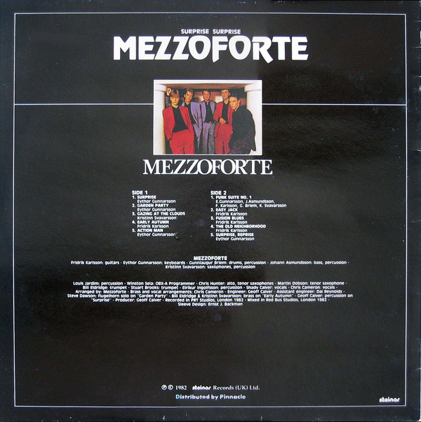 Surprise Surprise is Mezzoforte’s fourth album, from 1982. It was originally released in Iceland as 4 with a different cover, but the record company decided to use the cover of the previous Þvílíkt Og Annað Eins for the international release. [Wikipedia]