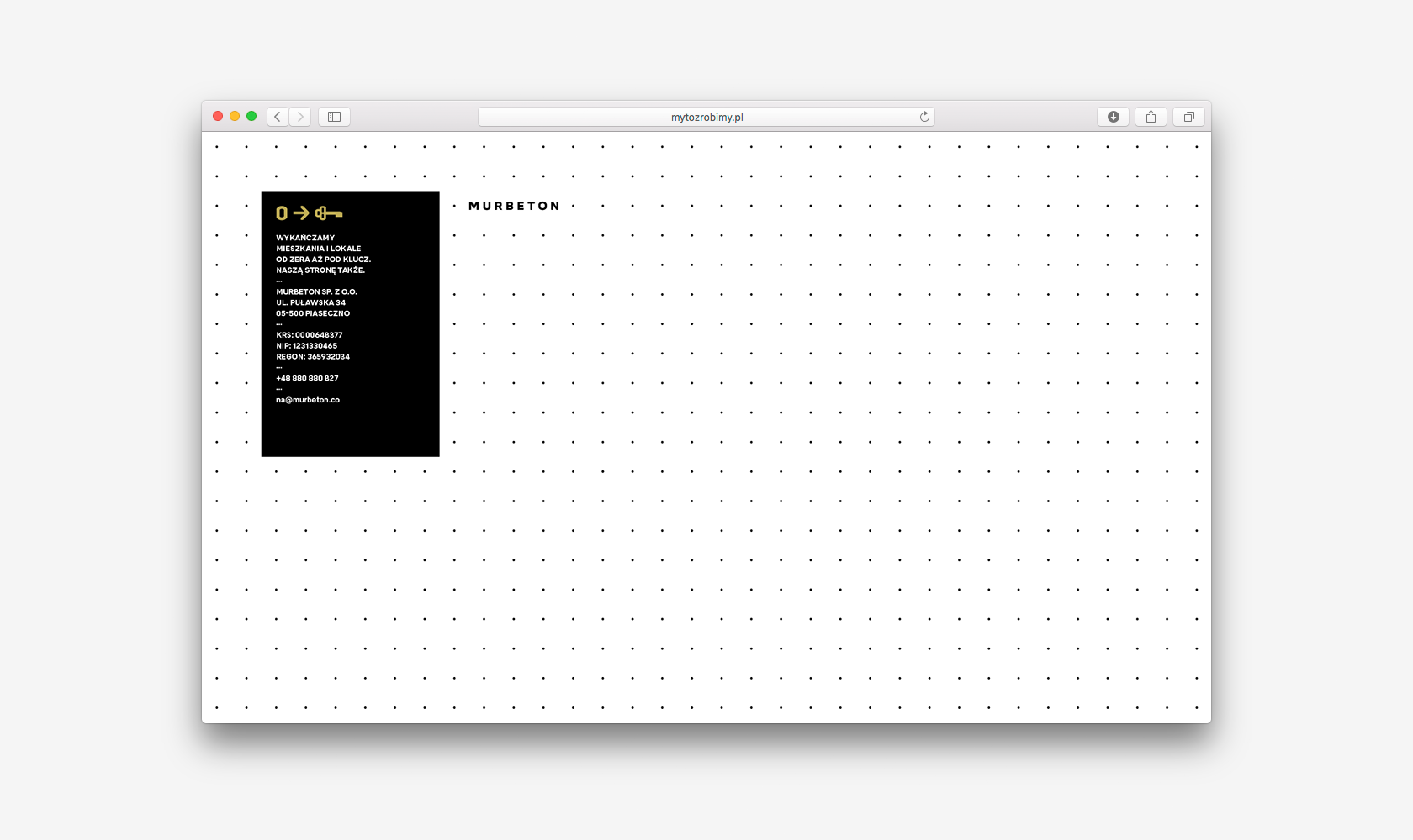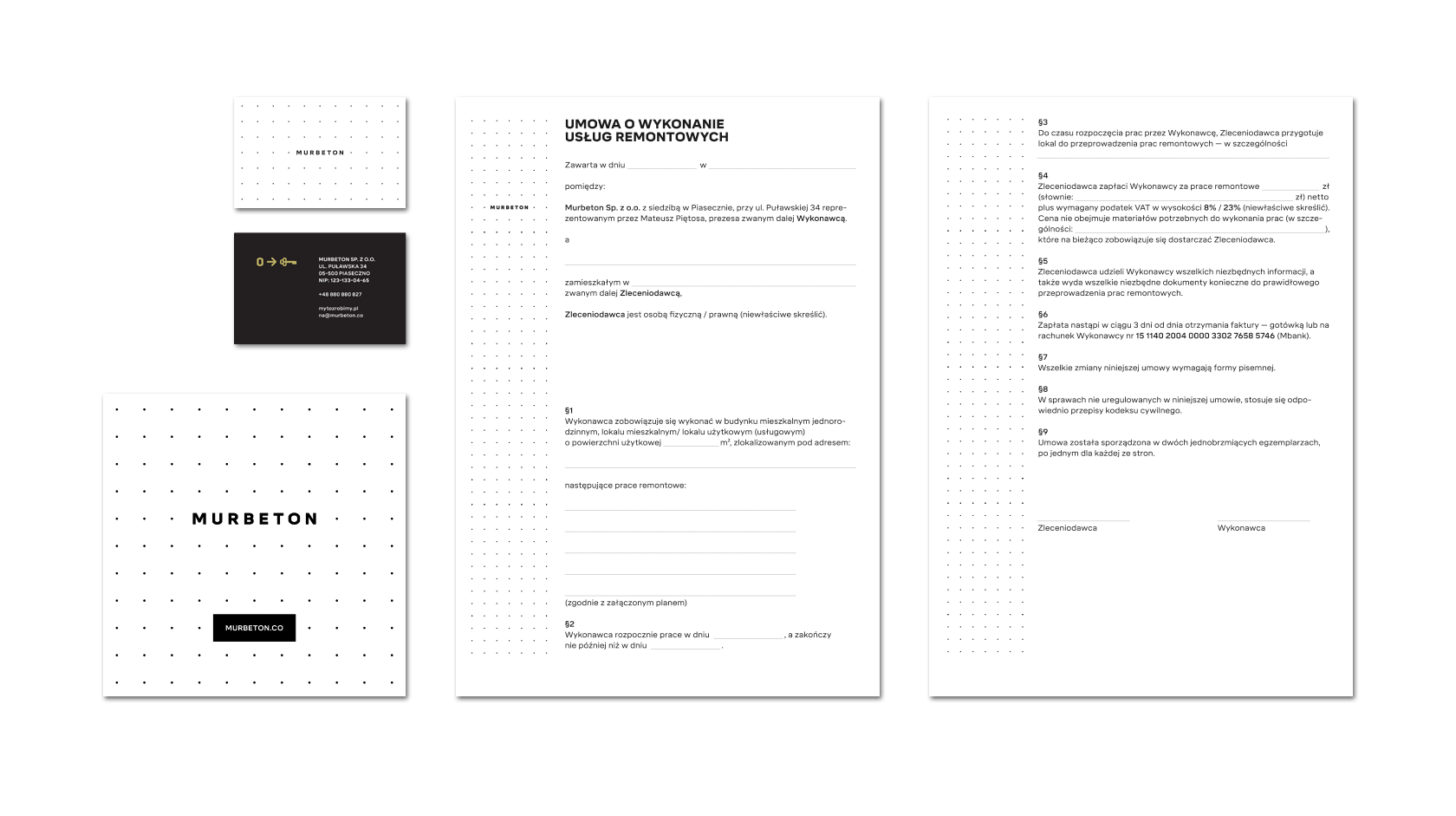 I began working on the brand’s image by choosing a name. It was supposed to be both original and catchy. Its task was to convey the idea of the highest quality services and build up the customer’s confidence. “Mur-beton” (lit. wall-concrete) is a colloquial definition of reliability. The name also relates to the construction industry in which it is hard to find trustworthy workers.