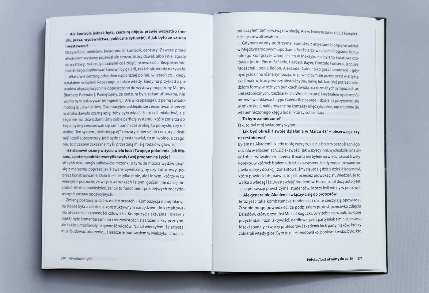 Rewolucje 1968 Contributed by muflon studio on Feb 19th, 2018. Artwork published in circa 2016. License: All Rights Reserved. Rewolucje 1968 (“Revolutions 1968”) is a book on the revolution of 1968 which took place in the USA and Europe. Redesign of an earlier publication accompanying an exhibition at Zachęta, made at ASP Katowice. License: All Rights Reserved. License: All Rights Reserved. License: All Rights Reserved. License: All Rights Reserved. License: All Rights Reserved. Typefaces More about Karmina SansGet Karmina Sans Formats Books (6404) Topics Education/Academia (2142) Art (4565) Politics (840) Designers/Agencies Weronika Mehr (5) muflon studio (11) Tagged with1968 (1)black and white (1979)photography (945)history (382)revolution (15)book covers (5745)book interiors (3559)photo books (271)Zachęta Narodowa Galeria Sztuki (1)exhibition catalogs (839)Polish (language) (288)Academy of Fine Arts Katowice (3) Artwork location Poland (435) Katowice (19) In Setsideas (Zbyszek Pietras) (13) Post a comment Name Email – will not be published Website Your response Submit Comment More Karmina Sans in use Algirdas Šeškus “Grey, but not Grey”2014Tomas MrazauskasContributed by TypeTogether DiaTipo Campinas 20162016Estúdio AnalógicoContributed by Diego Maldonado Ariana Grande, “thank u, next” lyric video2018Chris ShelleyContributed by Florence Fu Sponsor More in Art A Be Sea magazine, Issue I1996David JamesContributed by Gareth Hague Dieci: Biennale College Cinema 2012–222022Tomo TomoContributed by Luca Pitoni Staff Pick Fotograf Festival 2015c. 2015Anymade StudioContributed by Grilli Type Adrian Sauer. Foto Arbeiten2020Anna Lena von HelldorffContributed by Forgotten Shapes More in Books Dates Doors Then & Morec. 2024Matthias HübnerContributed by Lucas Le Bihan Go West (Éditions du Chêne, 1976)1976unknownÉditions du ChêneContributed by Stephen Coles Omdenken: El Arte de Pensar al Revés by Berthold Gunster, Temas de Hoy2024unknownContributed by Álvaro Franca Standby: An Approach to Theatrical Design by Joshua Langman2022Joshua LangmanContributed by Joshua Langman More Fonts In Use Booker Ervin with Dexter Gordon et al. – Setting the Pace album art1967Don SchlittenContributed by Florian Hardwig Staff Pick The Ruby Company2019One Design CompanyContributed by David Sieren Staff Pick Fuet magazine #42017Córdova CanillasContributed by Love Lagerkvist Staff Pick Los Angeles Times, “CAL 101: The 101 Best California Experiences” special section2023Los Angeles TimesAmy KingTaylor LeContributed by Jamie Otelsberg (OH no Type Co.) Staff Pick
