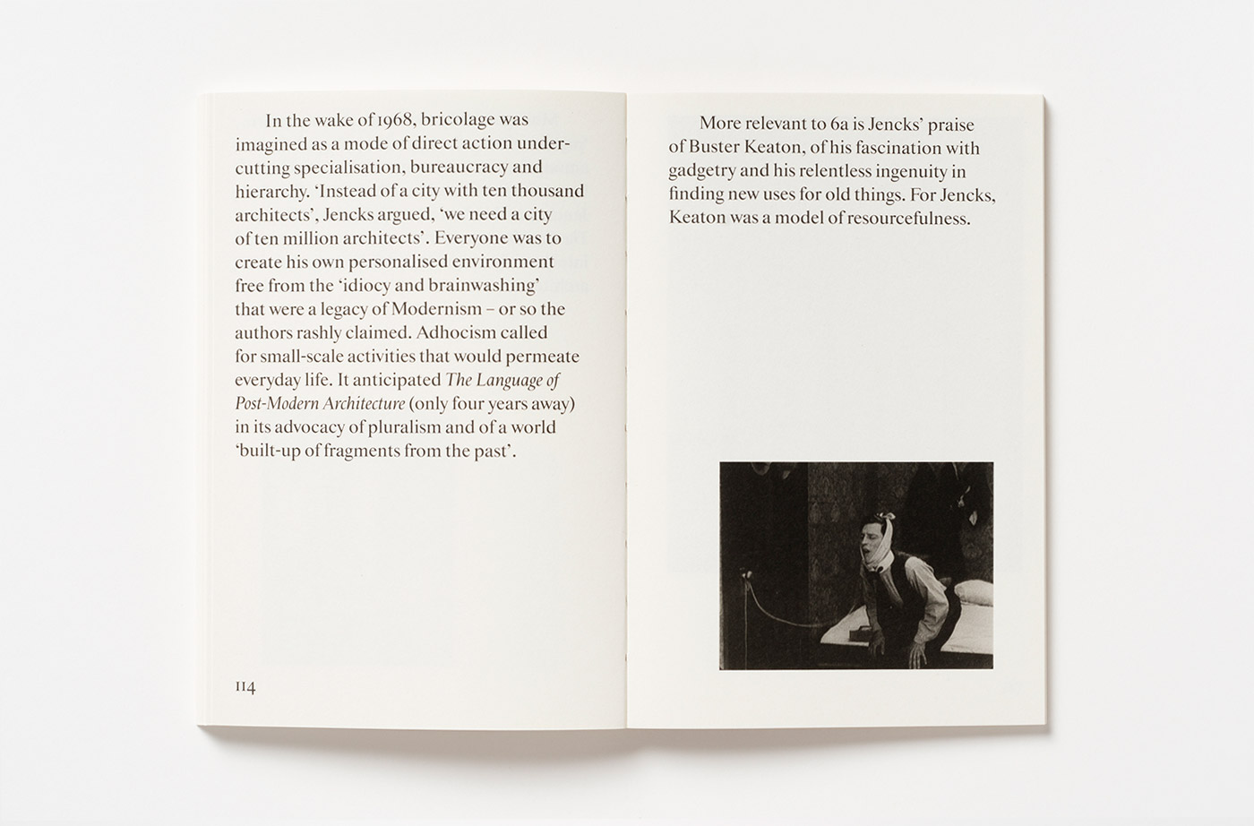 The design, developed by John Morgan, is inspired by the processes of bricolage, which is also a prominent influence on the work featured in the book. The large type size, combined with black and white photographs, focuses the images on the ideas, drawing new connections between them and allowing chapters to be read as independent pieces or as parts of a larger discussion.