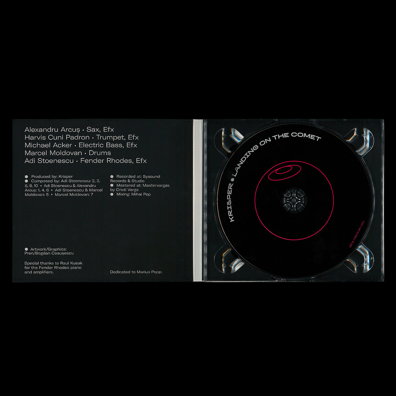 Landing on the Comet – Krisper Contributed by Swiss Typefaces on Oct 3rd, 2019. Artwork published in circa 2017. Source: www.facebook.com © Krisper. License: All Rights Reserved. Romanian designer Bogdan Ceausescu used BRRR (paired with GT America Extended) to create the cover for Landing on the Comet, jazz-fusion band Krisper’s latest record. The artwork has been drawn by Sebastian Pren. BRRR is part of the Lab typefaces, available from Swiss Typefaces. Source: www.pren.ro © Sebastian Pren/Bogdan Ceausescu. License: All Rights Reserved. Source: www.pren.ro © Sebastian Pren/Bogdan Ceausescu. License: All Rights Reserved. Source: www.pren.ro © Sebastian Pren/Bogdan Ceausescu. License: All Rights Reserved. Typefaces More about BrrrGet BrrrMore about GT AmericaGet GT America Formats Album Art (4313) Topics Music (6465) Designers/Agencies Bogdan Ceausescu (3) Sebastian Pren (6) Tagged withcompact discs (CDs) (462)jazz (497)all caps (7823)album records (2877)type in a box (724)track listings (1287)retro-futuristic (36)gradients (850)circles (168)Krisper (1)Arc Records (1)purple/violet (363)electronic music (592)drum and bass (12) Artwork location Romania (44) Bucharest (27) In Setsmusic (miguel anønimo) (62)Album Covers (Michael Leonhartsberger) (81)Favorite (CLEMENT LEPY) (57)Hot (jean-alexandre Jean) (106)Records + Swiss Typefaces (Swiss Typefaces) (17)Research_Web Radio (Vinicius Witte) (78)Futurista (Jose Guadalupe Esmerio) (10)Sarah Portfolio (Moshi Mochi) (172)modern album art (J. Plymouth) (49) Post a comment Name Email – will not be published Website Your response Submit Comment More Brrr in use SEED Editions wheatpaste campaign2018Seed AtelierContributed by Swiss Typefaces Arde2020Martin EscalanteContributed by Martin Escalante In Your Facec. 2018ItYtKiriakoula KremantzouliMelanie RosenauerContributed by Swiss Typefaces Staff Pick Sponsor More in Music Endolyne Records logo2004Modern DogContributed by Stephen Coles Simply Red – Stars album art1991Sammy FarringtonEast West RecordsContributed by Blythwood Ikson single coversc. 2019unknownContributed by Javi Gonzalez Judy Garland at Lincoln Center, Feb 25, 19681968Seymour ChwastContributed by Stephen Coles More in Album Art Re’Generation – What Price Freedom album art1972Bob McConnellPhoto(s) by Bart Solenthaler on Flickr. Telly Savalas – “If” / “Rubber Bands and Bits of String” Dutch single cover1975unknownContributed by Johannes Vandenheuvel I Am Here – Alice Mary2017Enem StudioGéraldine Nassieu-MaupasContributed by Geraldine Nassieu-Maupas Jeff Beck – “Tally Man” single cover (Sundazed)2015John Sellards DesignContributed by John Sellards More Fonts In Use L’artiste et le vivant by Valérie Belmokhtar2022Philippe BrulinContributed by VJ-Type Staff Pick Beggar’s Opera – Act One album art1970KeefContributed by Florian Hardwig Staff Pick Paris, 80 photographies de Moï Ver1931Moï VerContributed by Stephen Coles Staff Pick Chuck Porter Was Pretty Good201572andSunnyContributed by Clare Jensen Staff Pick